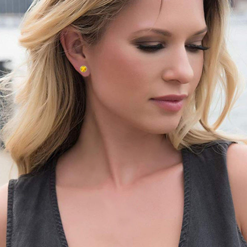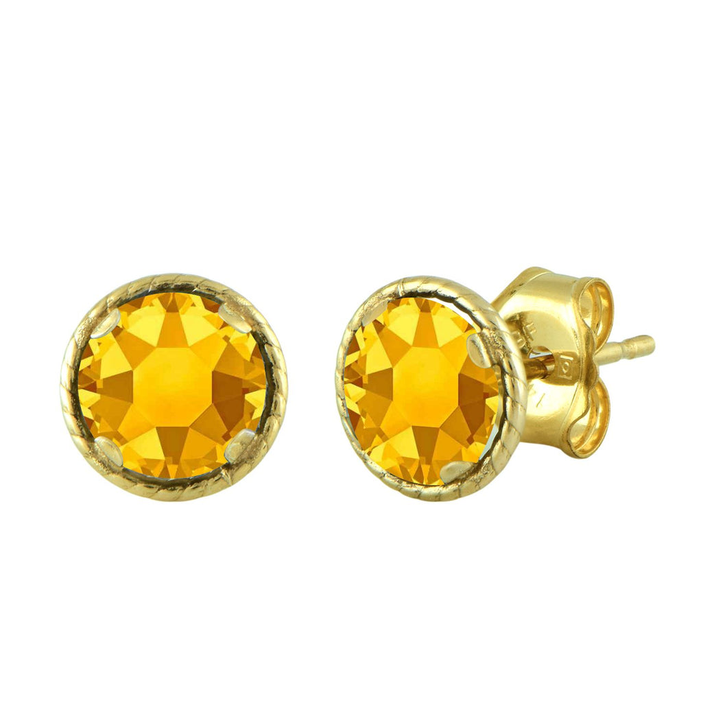 • 10K Yellow Gold with Round Topaz Crystal Stud Earrings