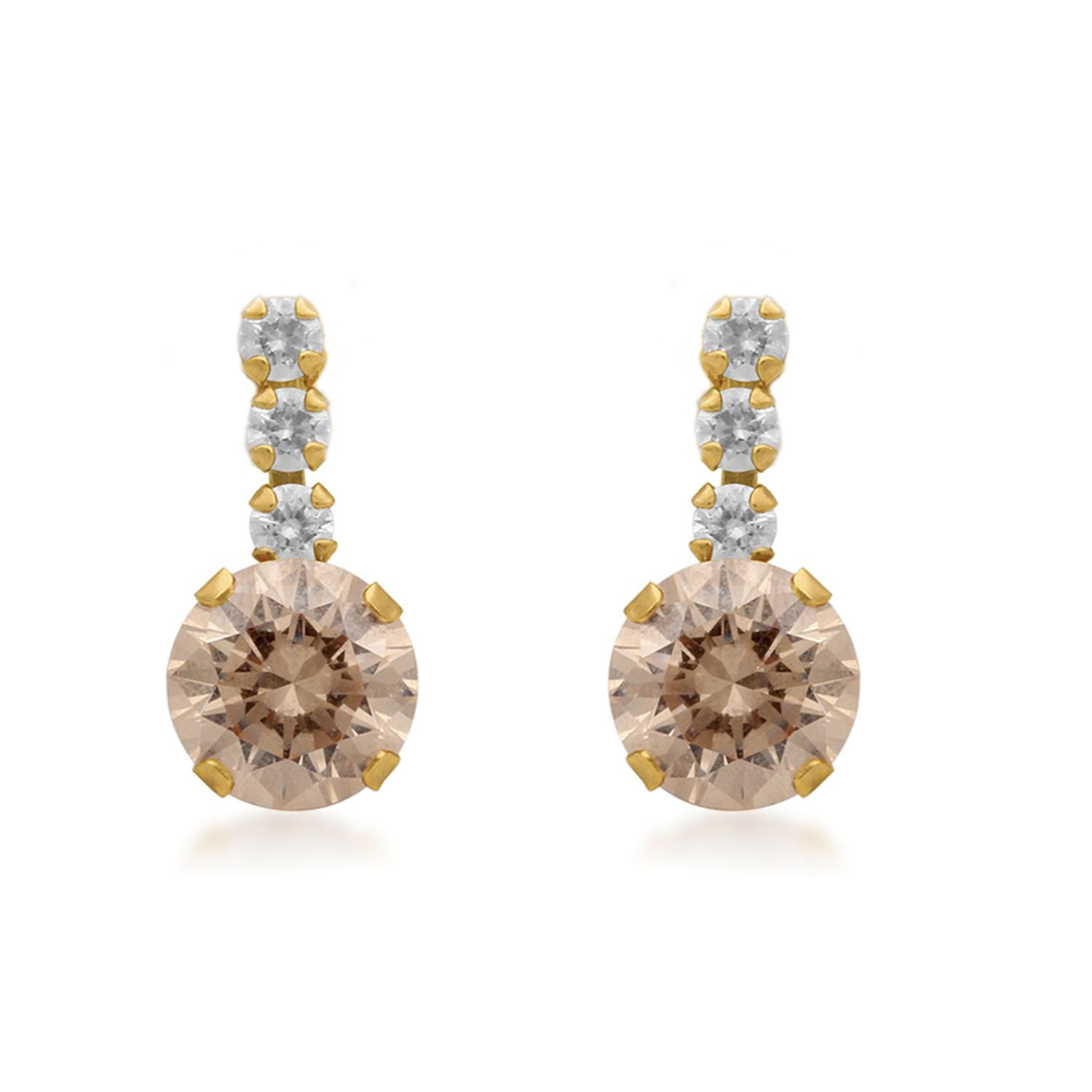 • 10KT Yellow Gold White and Champagne Cubic Zirconia Cubic Zirconia Stud Earrings