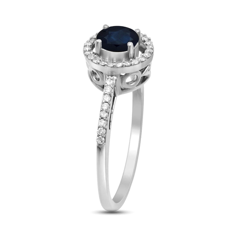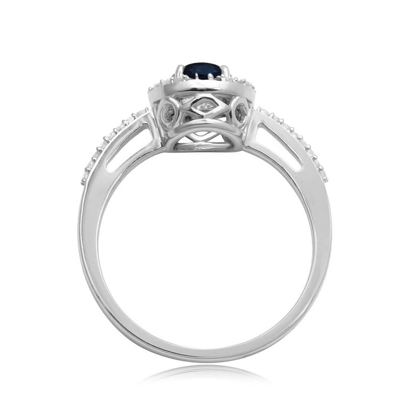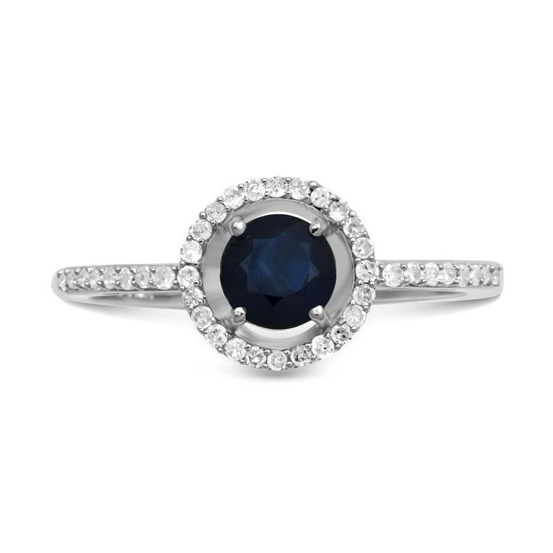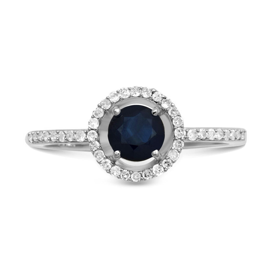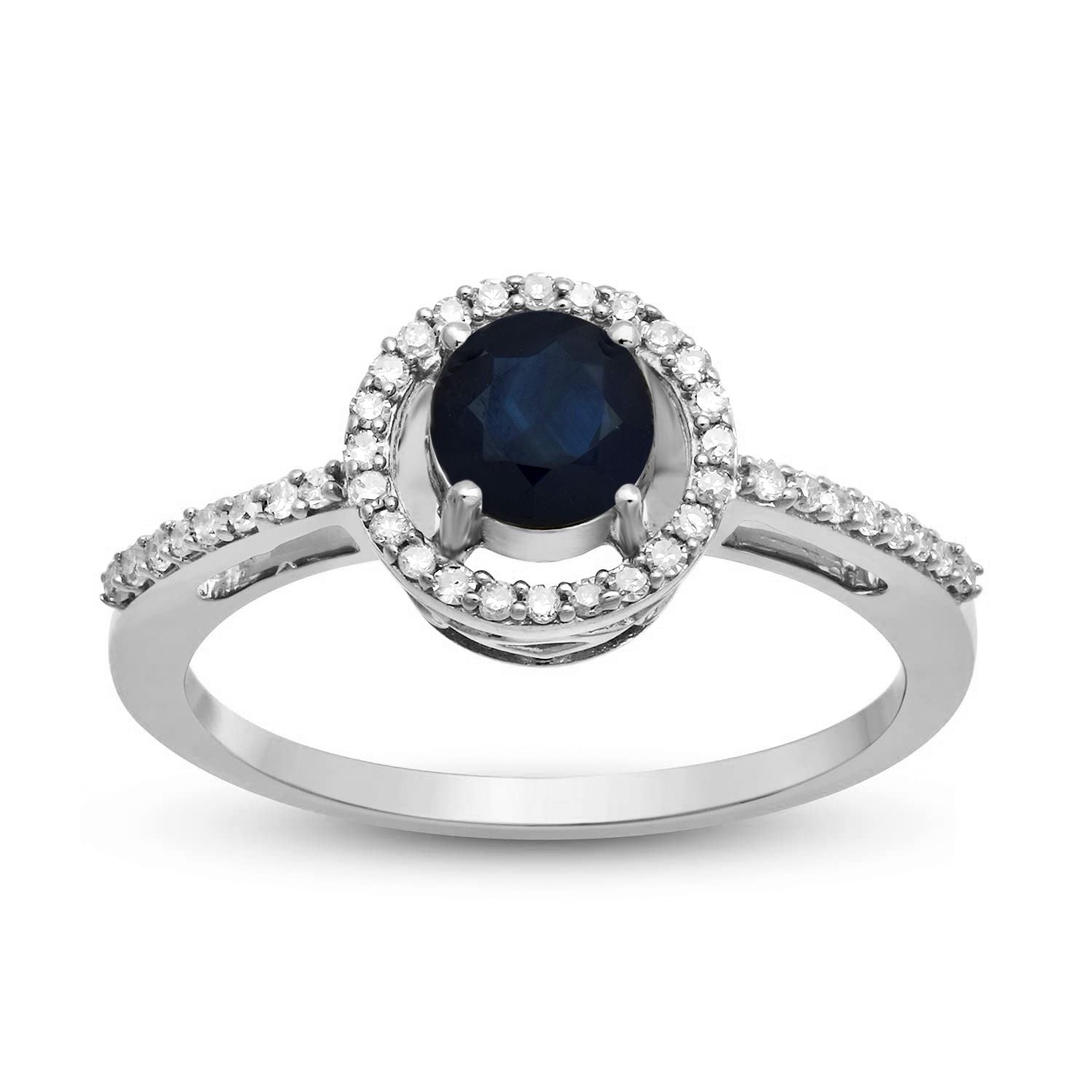 Jewelili 10K White Gold with Round Blue Sapphire and 1/6 CTTW Round Natural White Diamonds Halo Ring