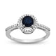 • Load image into Gallery viewer, Jewelili Halo Ring with Round Blue Sapphire and CTTW Round Natural White Diamonds in 10K White Gold 1/6 View 2