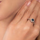 • Load image into Gallery viewer, Jewelili Halo Ring with Round Blue Sapphire and CTTW Round Natural White Diamonds in 10K White Gold 1/6 View 4