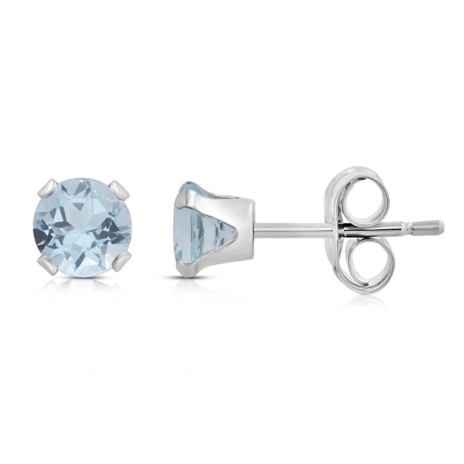 • 10K White Gold stud Earrings embellished with Round Aquamarine. Includes 14kt White Gold Filled Brass Rhodium Plated Clutch Earnut