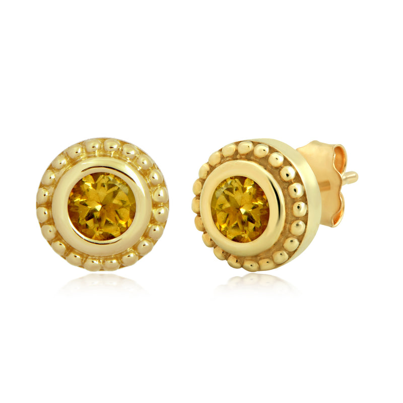 Jewelili 10K Yellow Gold with Natural Round Citrine Stud Earrings