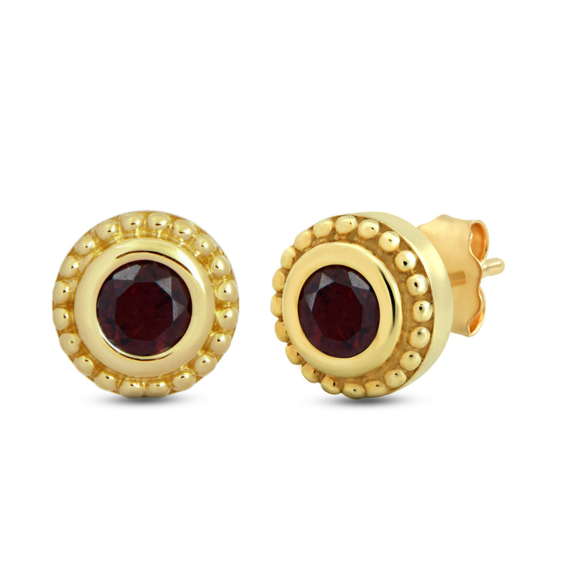 • Bezel Set 4 MM Natural Round Garnet 10K Yellow Gold Stud Earrings