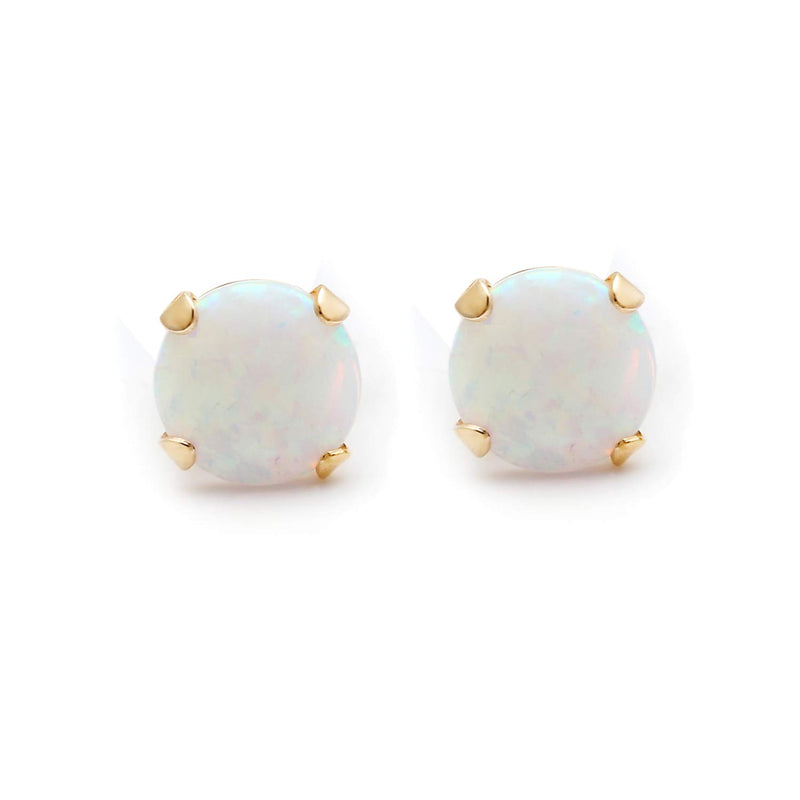 Details: 10K Yellow Gold with Round Created Opal Stud Earrings
