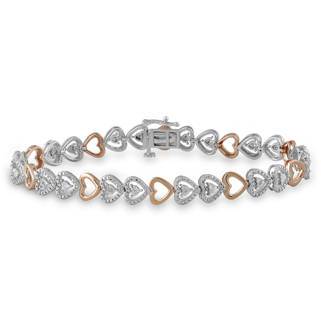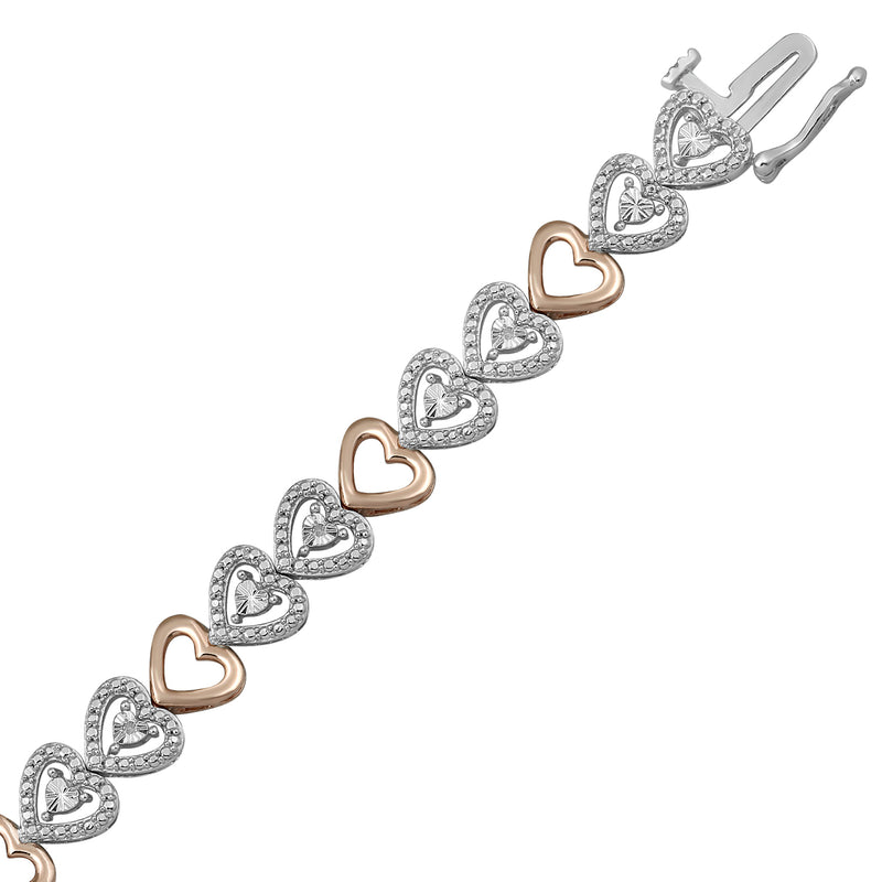 Jewelili 14K Rose Gold Over Brass Heart Miracle Plated White Diamonds Link Bracelet