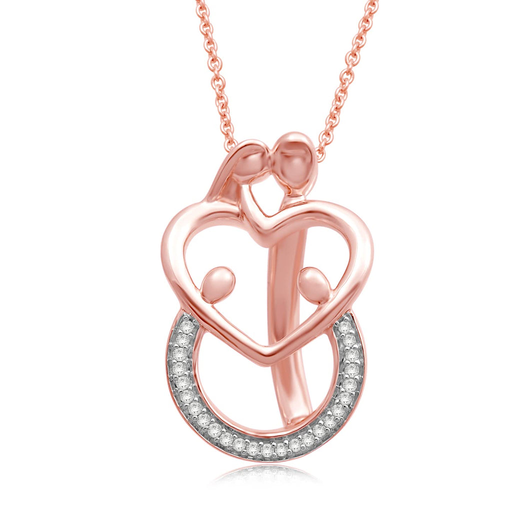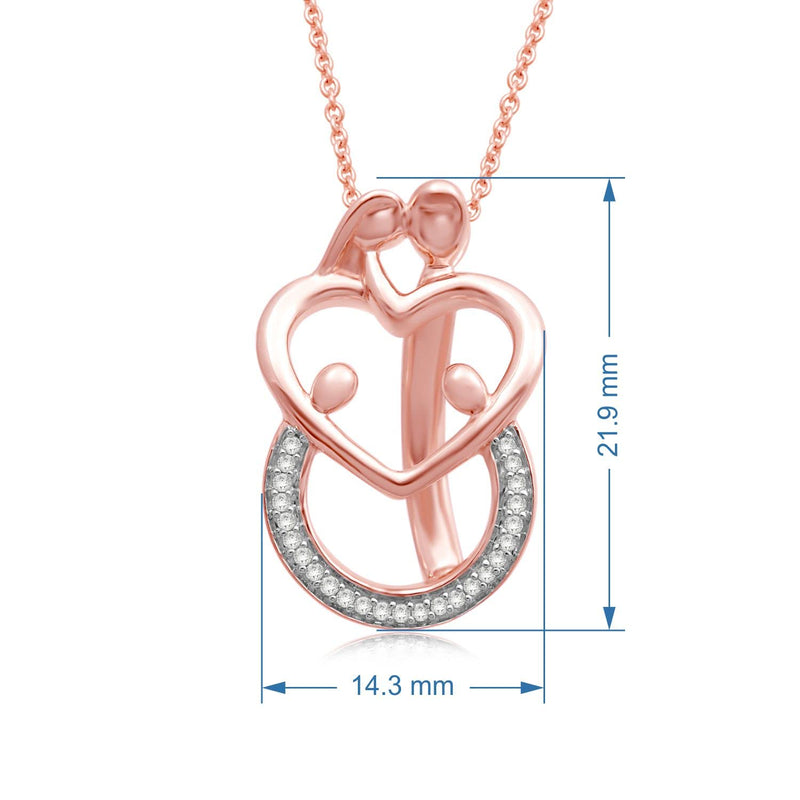 Jewelili 14K Rose Gold Over Sterling Silver 1/10 CTTW Diamonds Parents with Two Children Pendant Necklace