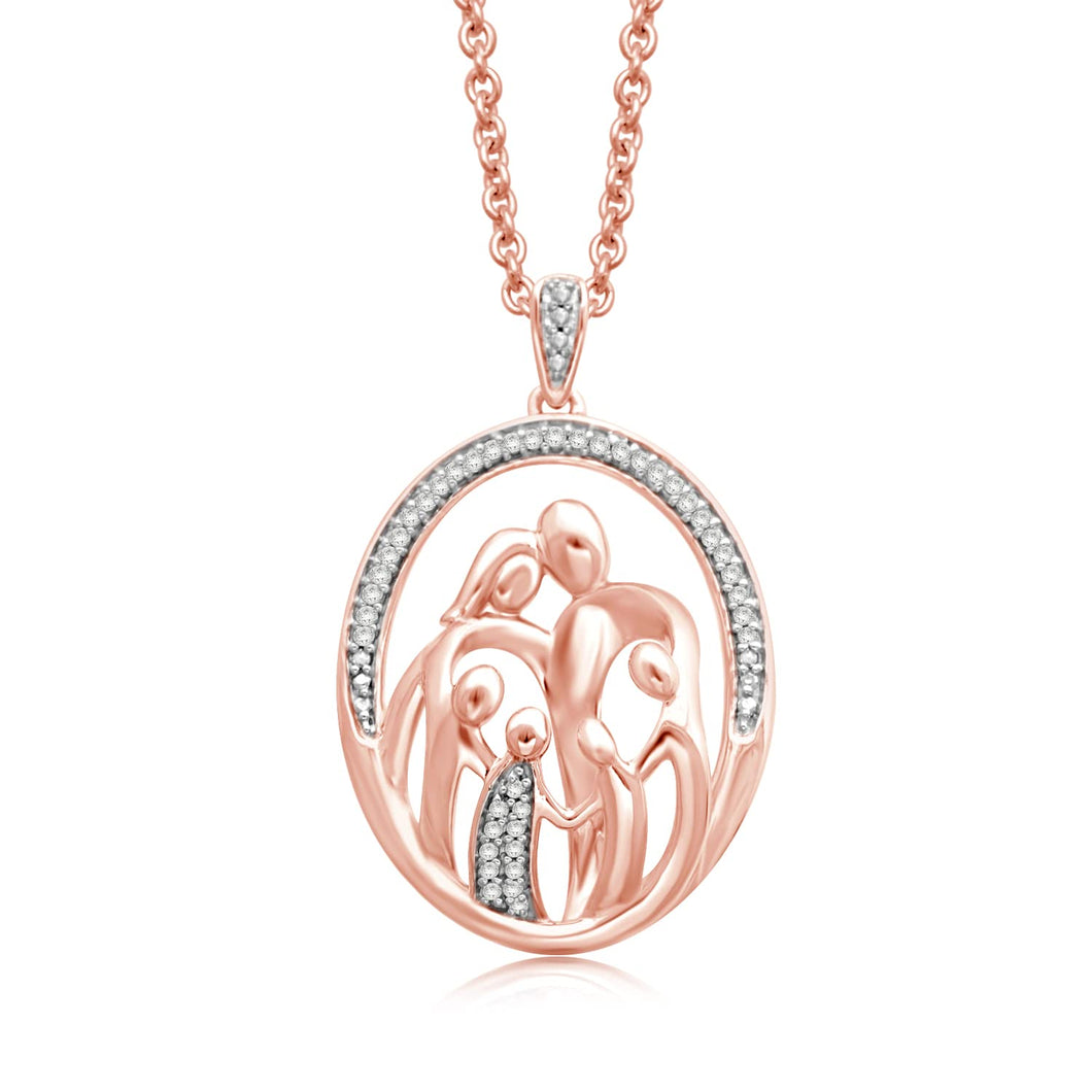 Jewelili 14K Rose Gold Over Sterling Silver With 1/10 CTTW Natural White Diamonds Parent and Four Children Family Pendant Necklace
