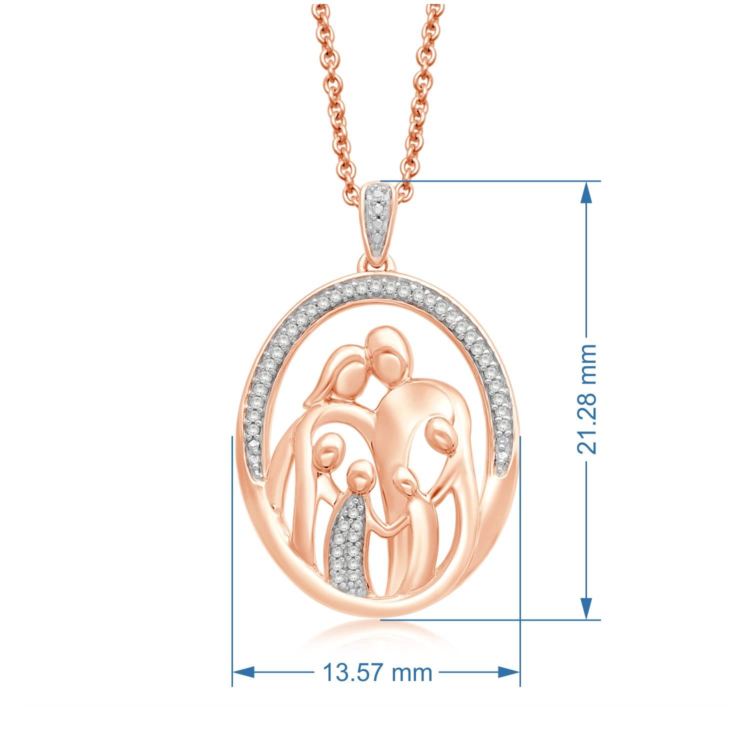 • Load image into Gallery viewer, Jewelili Natural White Diamonds Parent and Four Children Family Pendant Necklace in 14K Rose Gold over Sterling Silver 1/10 CTTW View 3