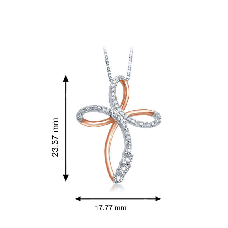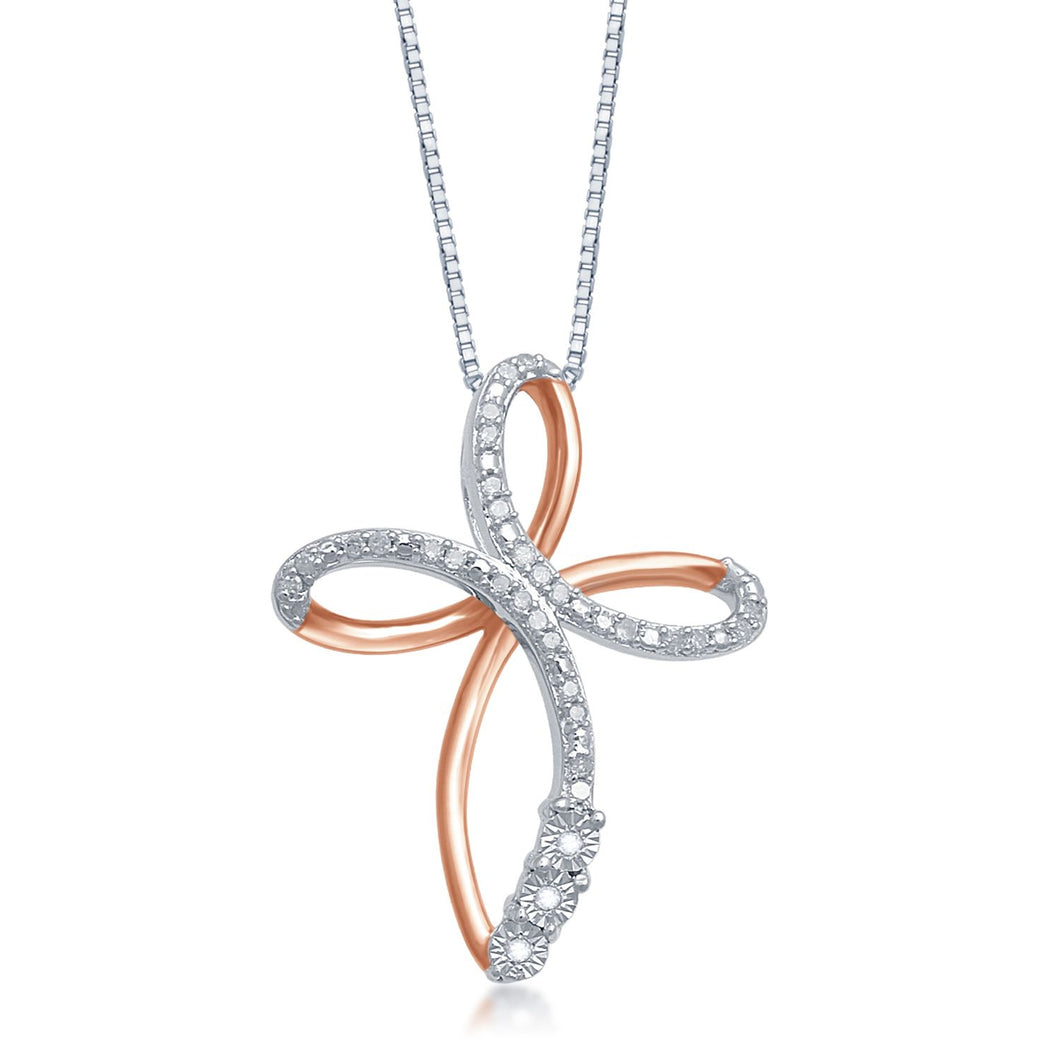 • 14K Rose Gold Over Sterling Silver with 1/10 Cttw Natural White Round Diamonds Cross Pendant Necklace