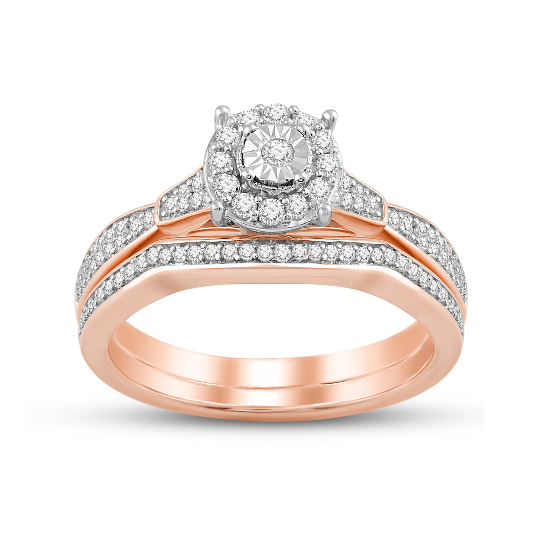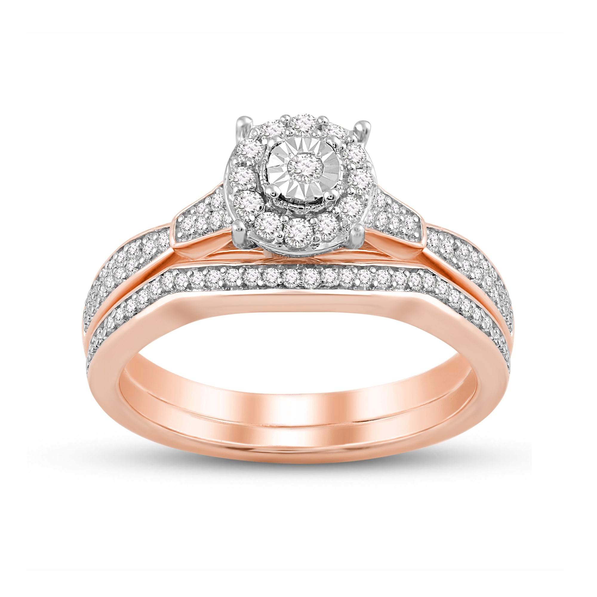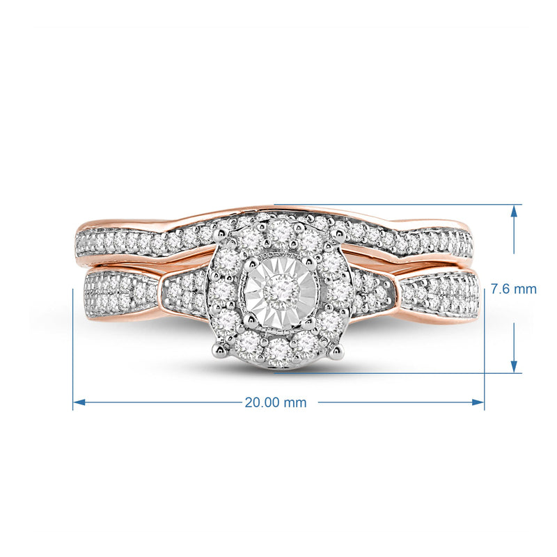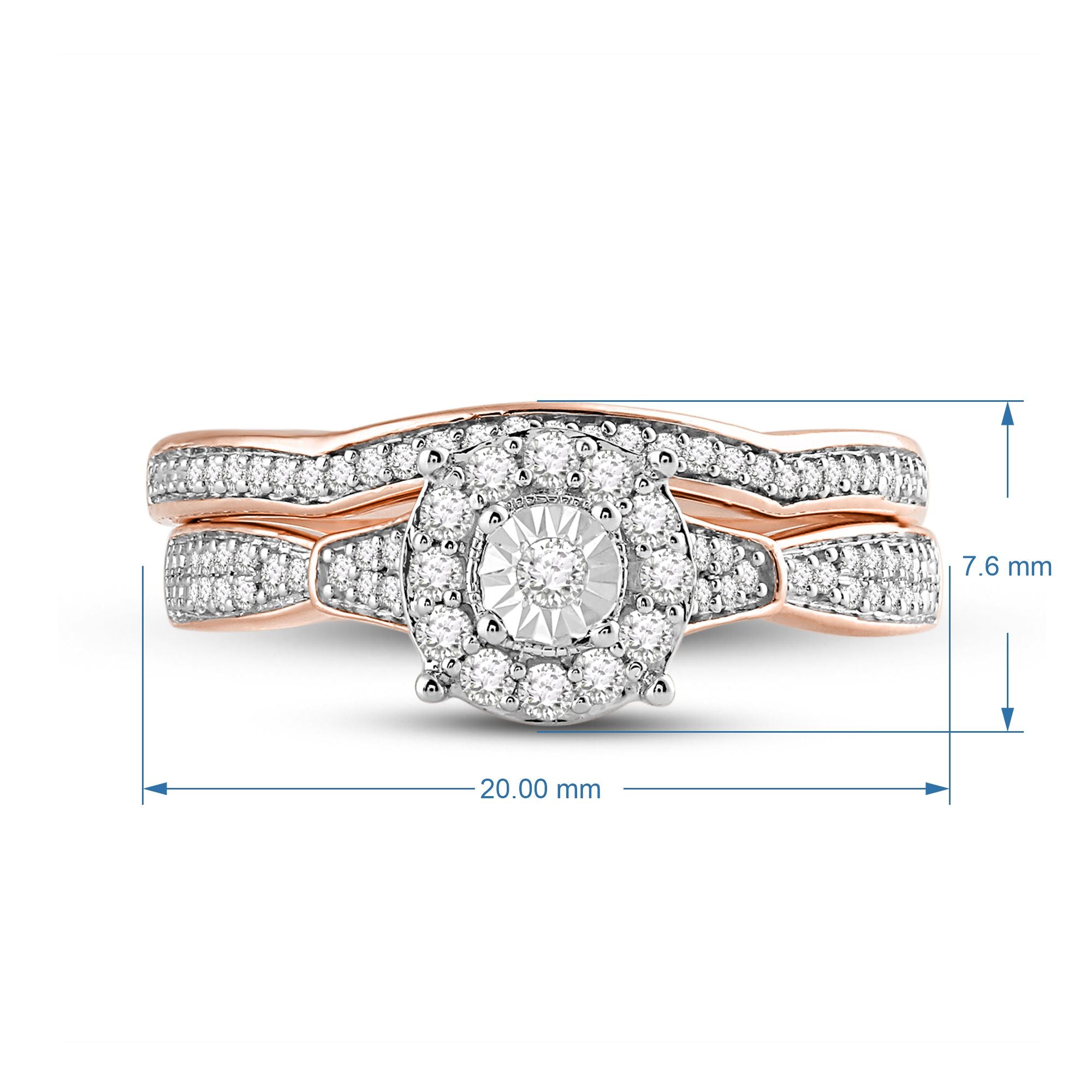 Jewelili 14K Rose Gold over Sterling Silver with 1/3 CTTW Diamonds Bridal Engagement Ring
