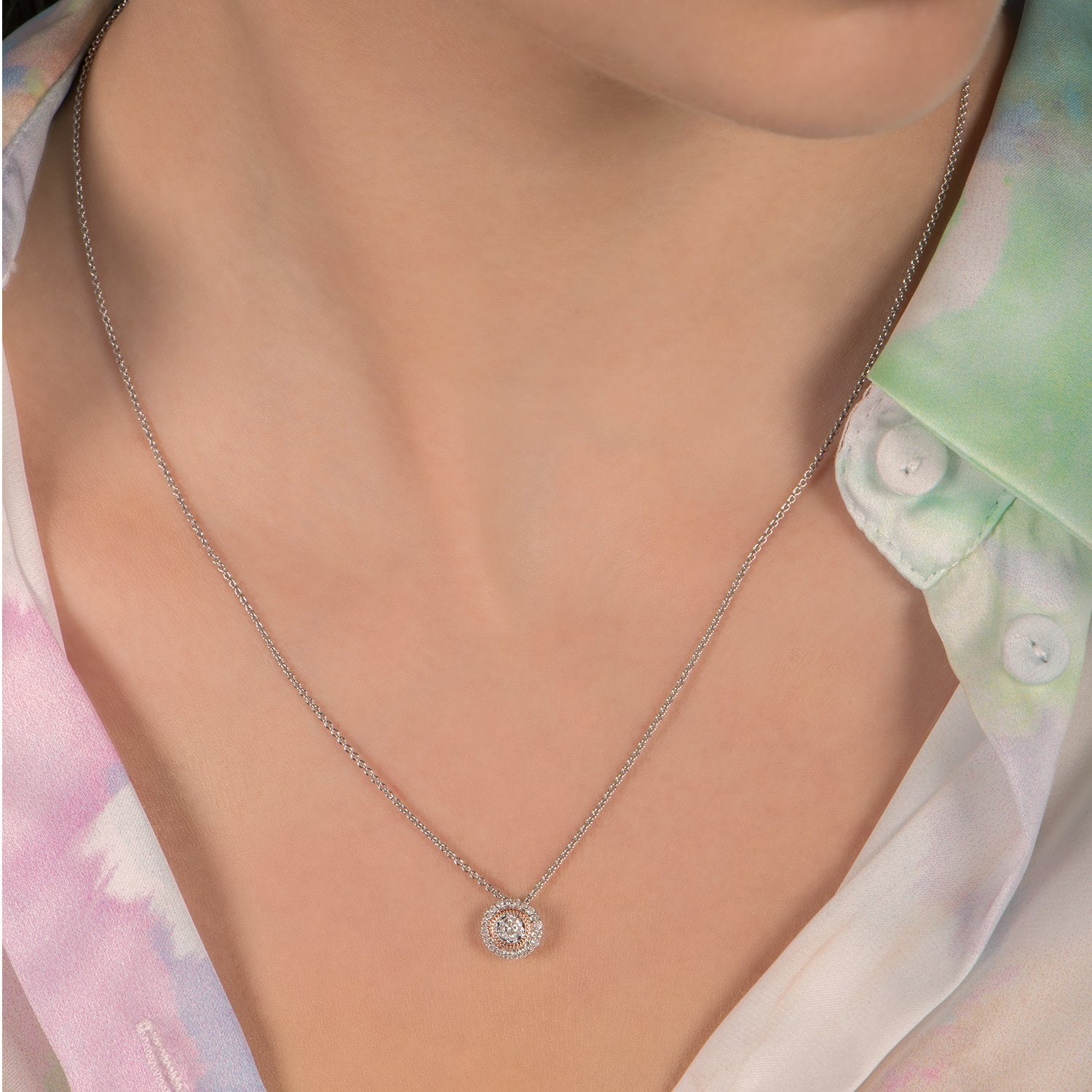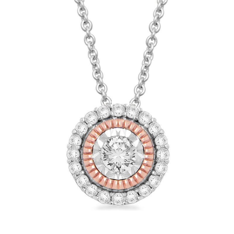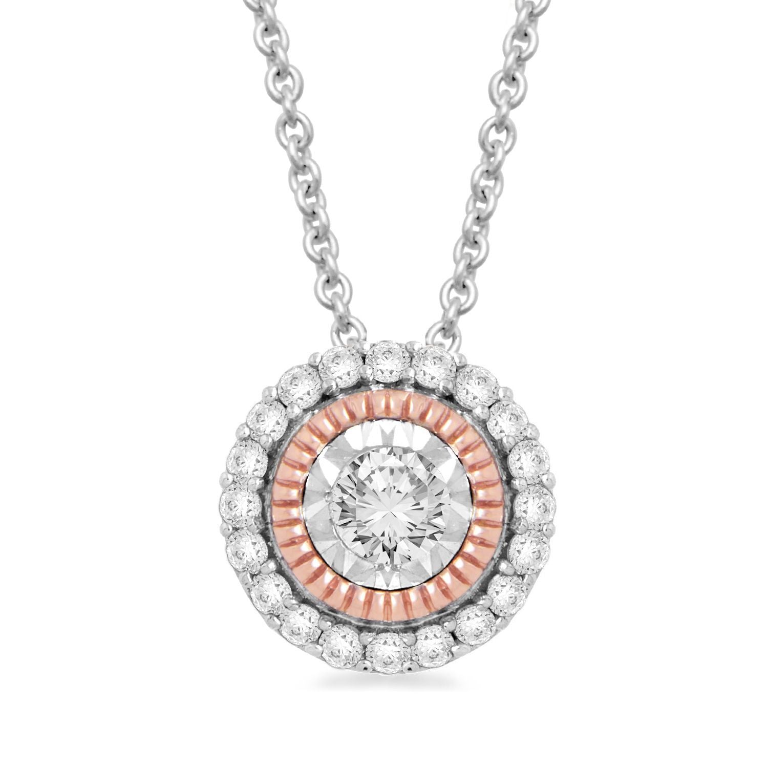 • 14K Rose Gold Over Sterling Silver with 1/4 Cttw Natural White Diamond Round Shape Pendant Necklace