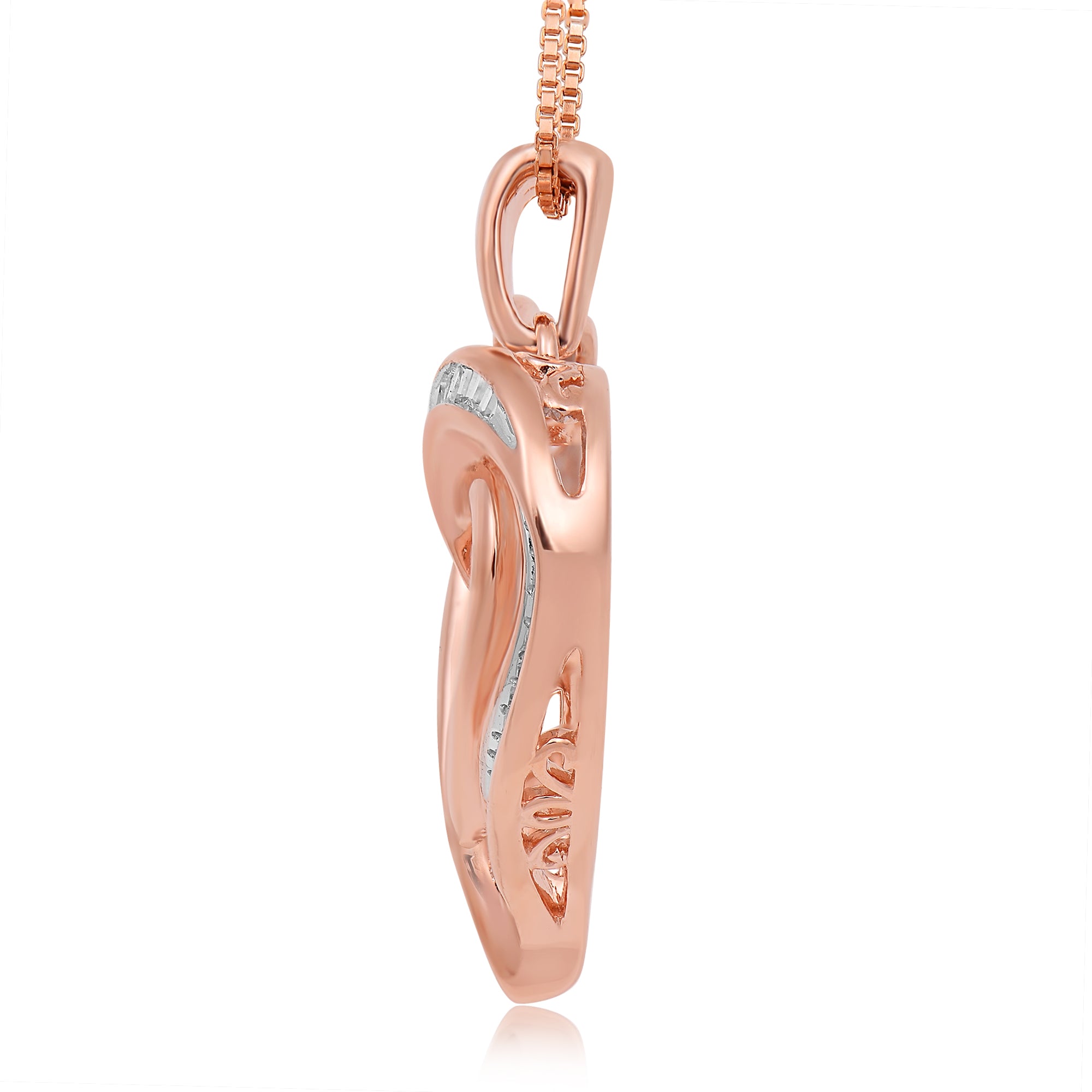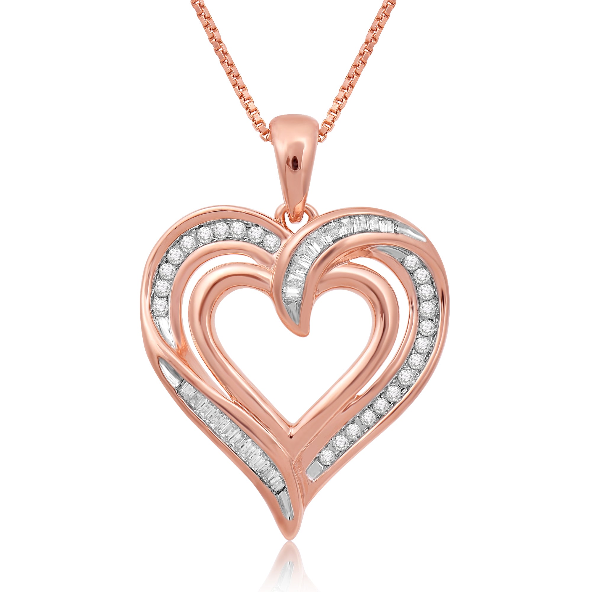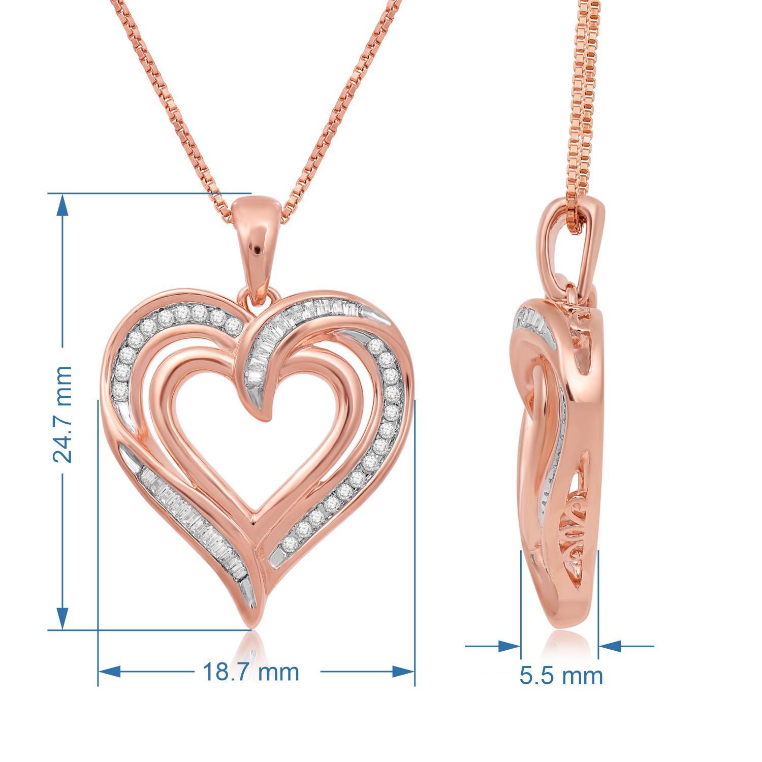 • Jewelili 14K Rose Gold over Sterling Silver with 1/4 Cttw Round and Baguettes Natural Diamonds Heart Pendant Necklace