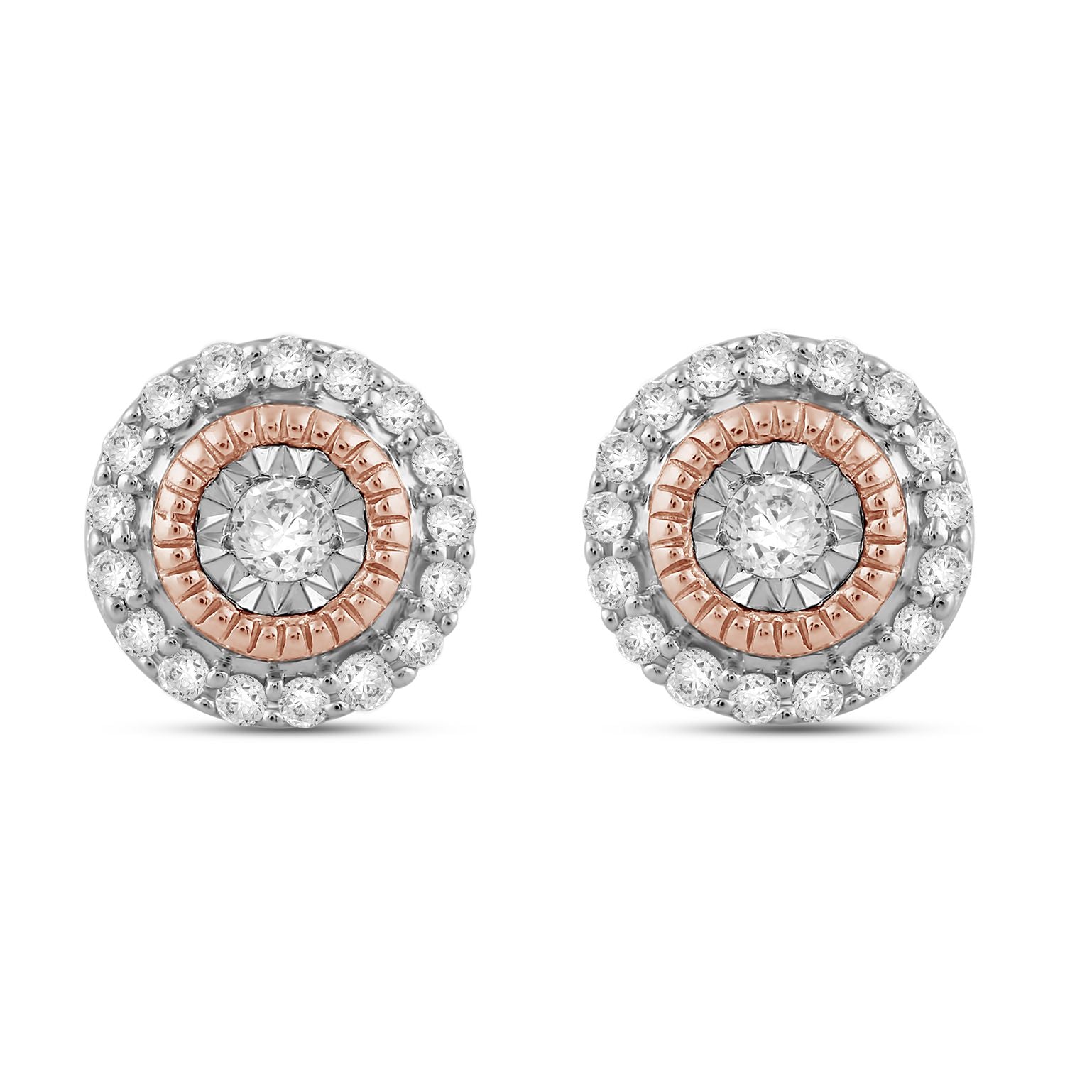 • 14K Rose Gold Over Sterling Silver with 1/4 Cttw White Diamond Round Shape Stud Earrings