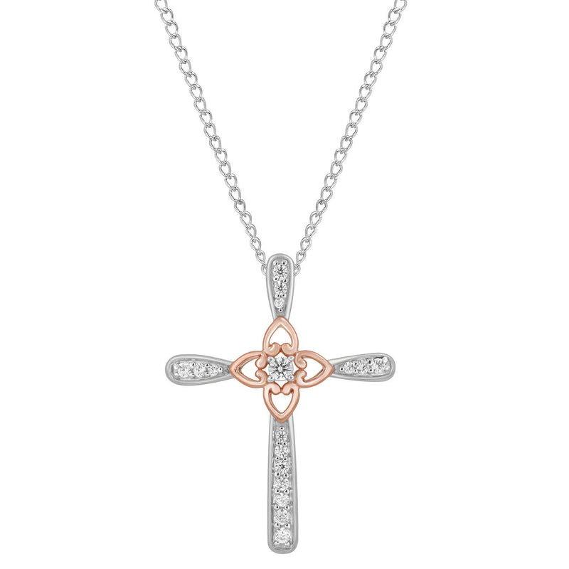 • 14K Rose Gold Over Sterling Silver With 1/8 Cttw Diamonds Cross Pendant Necklace