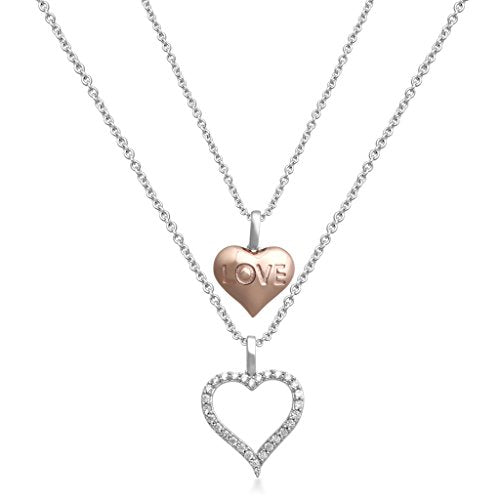 • Two Heart Pendant Necklace with Love engraved Heart and Cubic Zirconia studded Heart. Pendant includes 18" cable chain with lobster claw.