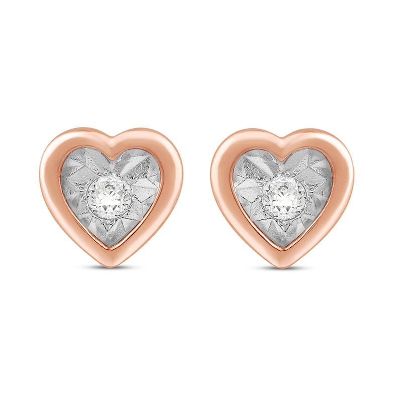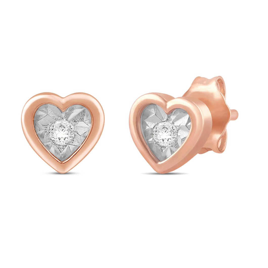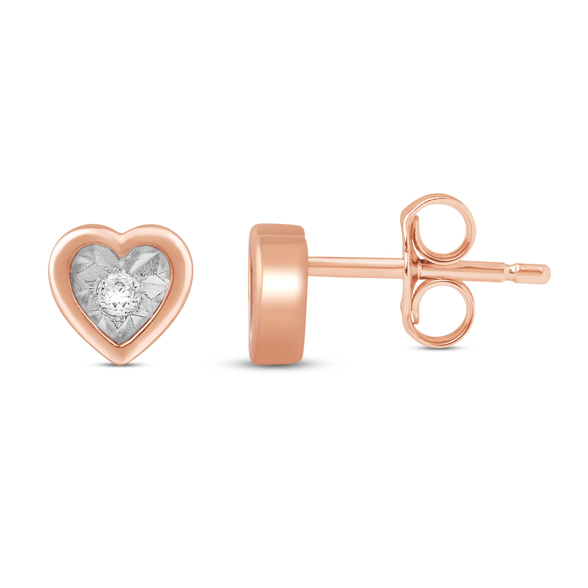 • 14K Rose Gold Over Sterling Silver with Natural White Round Shape Diamond Accent Heart Stud Earrings