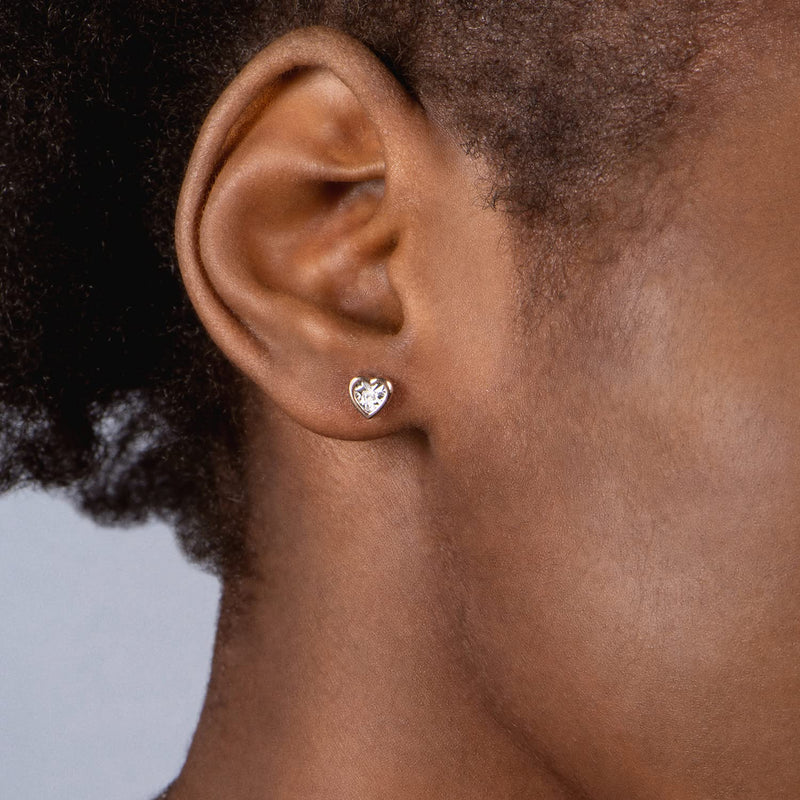• Load image into Gallery viewer, Jewelili Heart Stud Earrings with Natural White Round Shape Diamonds in 14K Rose Gold Over Sterling Silver view 3