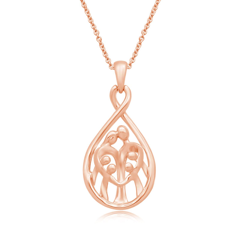 Jewelili 14K Rose Gold over Sterling Silver With Parent and Four Children Family Teardrop Pendant Necklace