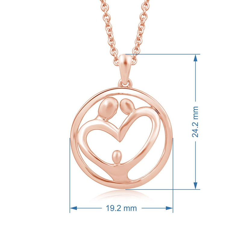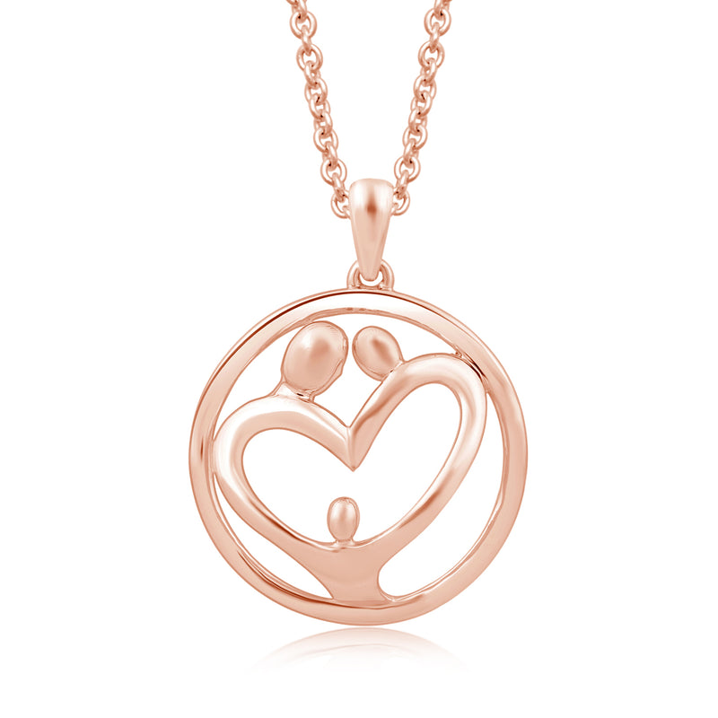 Jewelili 14K Rose Gold Over Sterling Silver With Parent and One Child Family Pendant Necklace