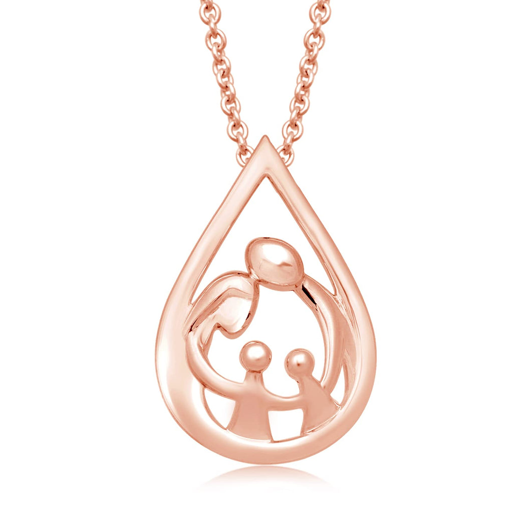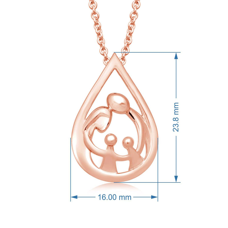 Details: 14K Rose Gold Over Sterling Silver With Parent and Two Children Family Teardrop Pendant Necklace