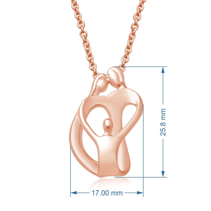 Details: 14K Rose Gold Over Sterling Silver With Parent One Child Family Heart Pendant Necklace