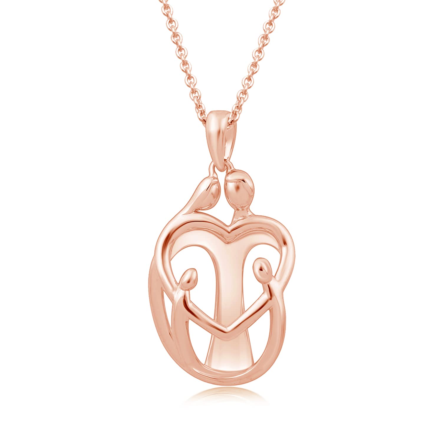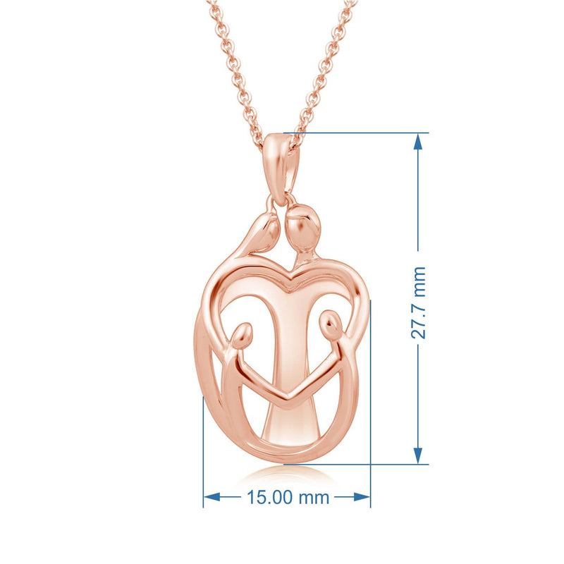 Jewelili 14K Rose Gold Over Sterling Silver With Parent with Two Children Family Heart Pendant Necklace