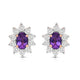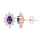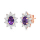 • Load image into Gallery viewer, Jewelili 14K Rose Gold Over Sterling Sliver Oval Created Amethyst and 1/20 CTTW Natural White Round Diamond Cluster Stud Earrings
