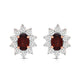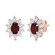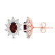 • Load image into Gallery viewer, Jewelili 14K Rose Gold Over Sterling Sliver Oval Genuine Garnet and 1/20 CTTW Natural White Round Diamond Cluster Stud Earrings