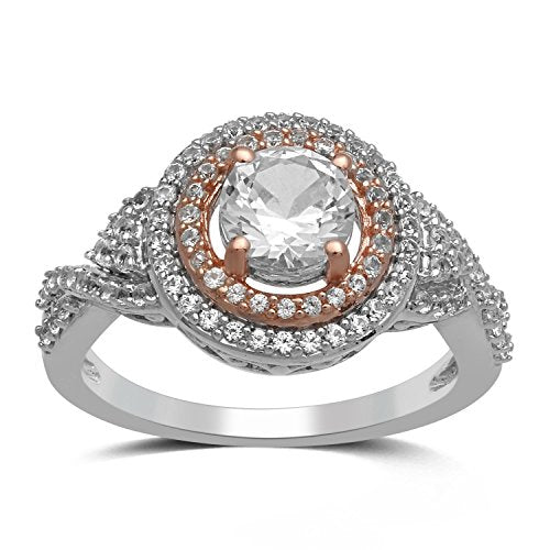 Details: 14k Rose Gold Over Sterling Silver 6mm (1.25ct) Center Round Created White Sapphire Halo Ring