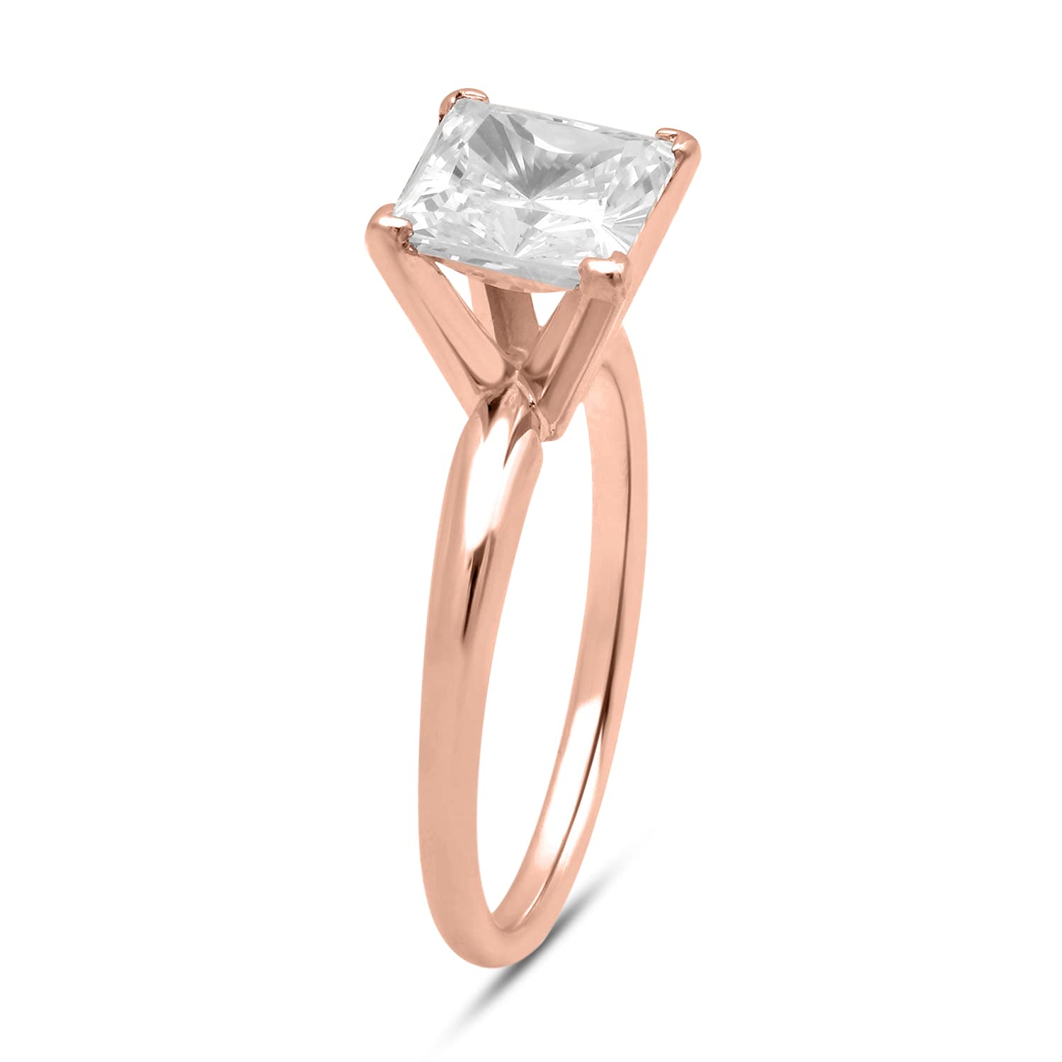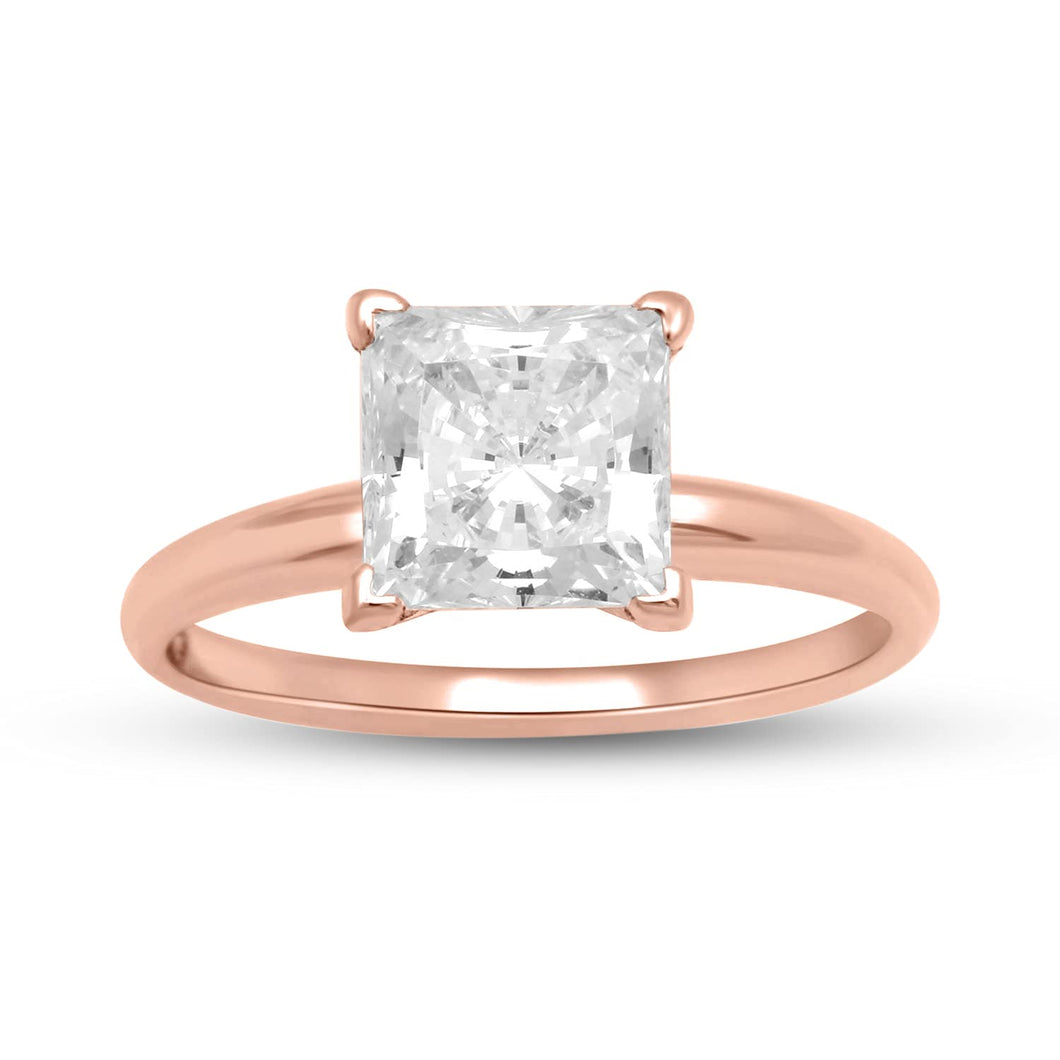 • Load image into Gallery viewer, Jewelili Cubic Zirconia Solitaire Princess cut Engagement Ring in 14K Rose Gold View 1