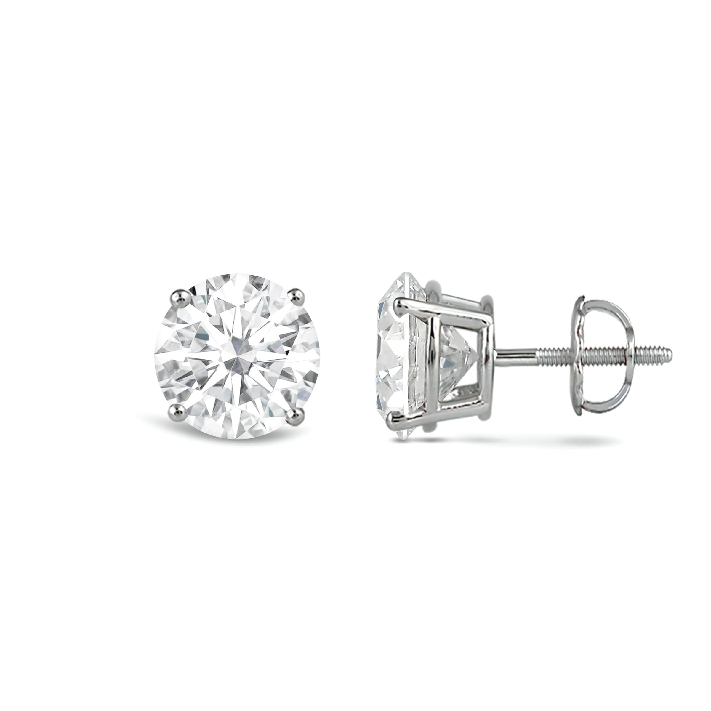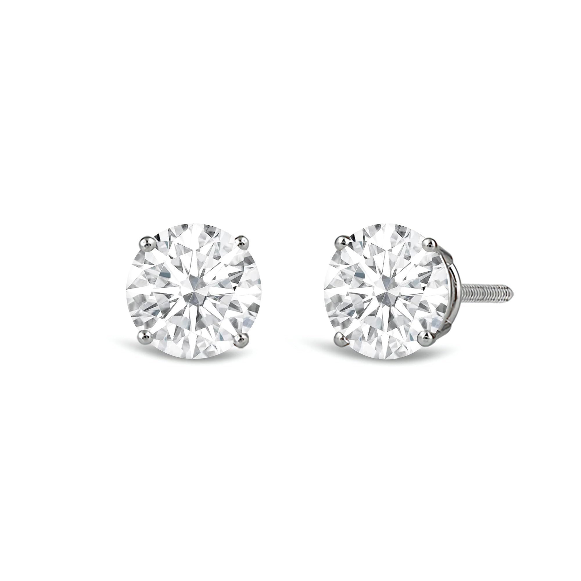 Jewelili 14K Solid White Gold Classic Four Prong Stud Earrings | IGI Certified Round Cut Lab Grown Diamond | Screw Back Posts | 0.75 CTW (F Color, SI2 Clarity) | With Gift Box