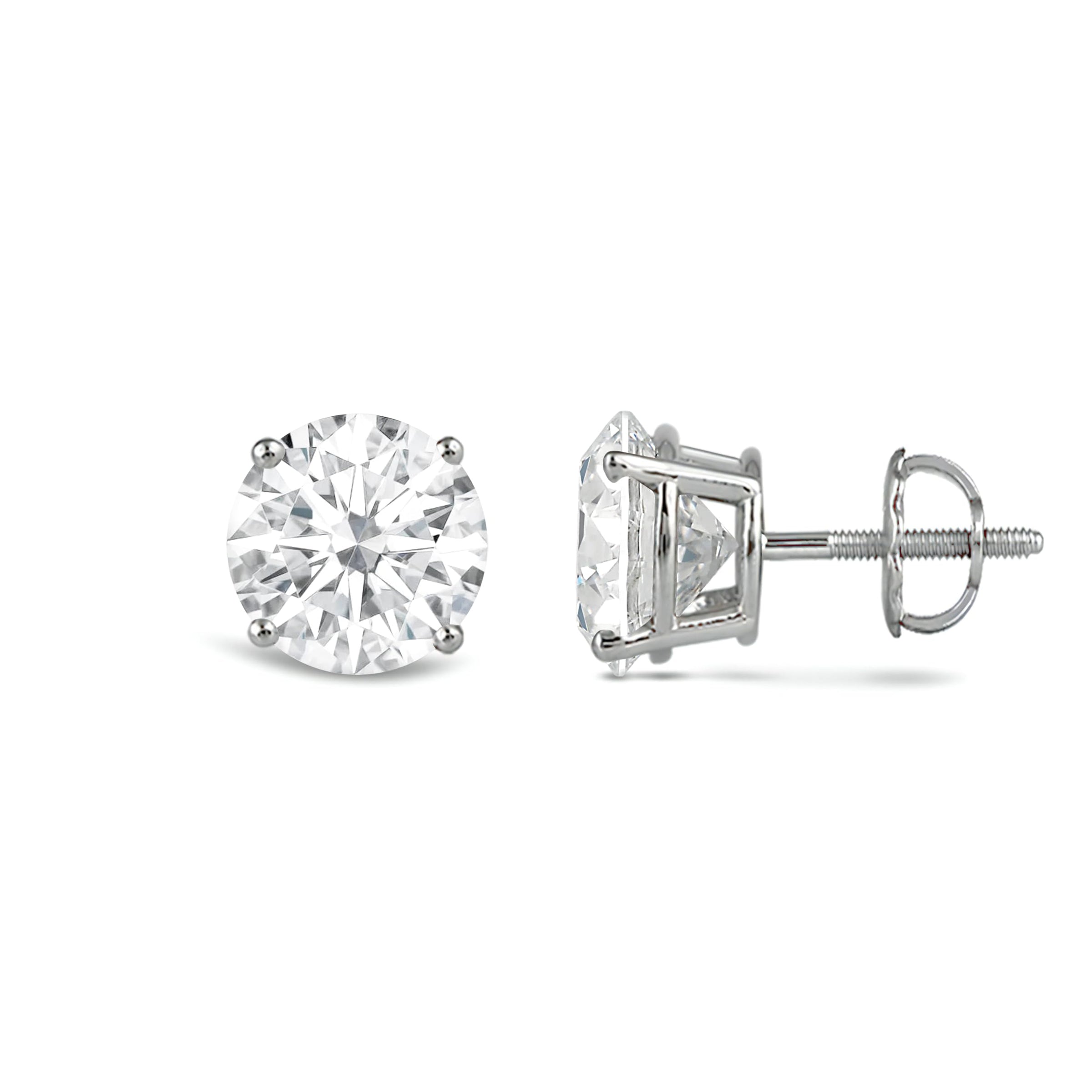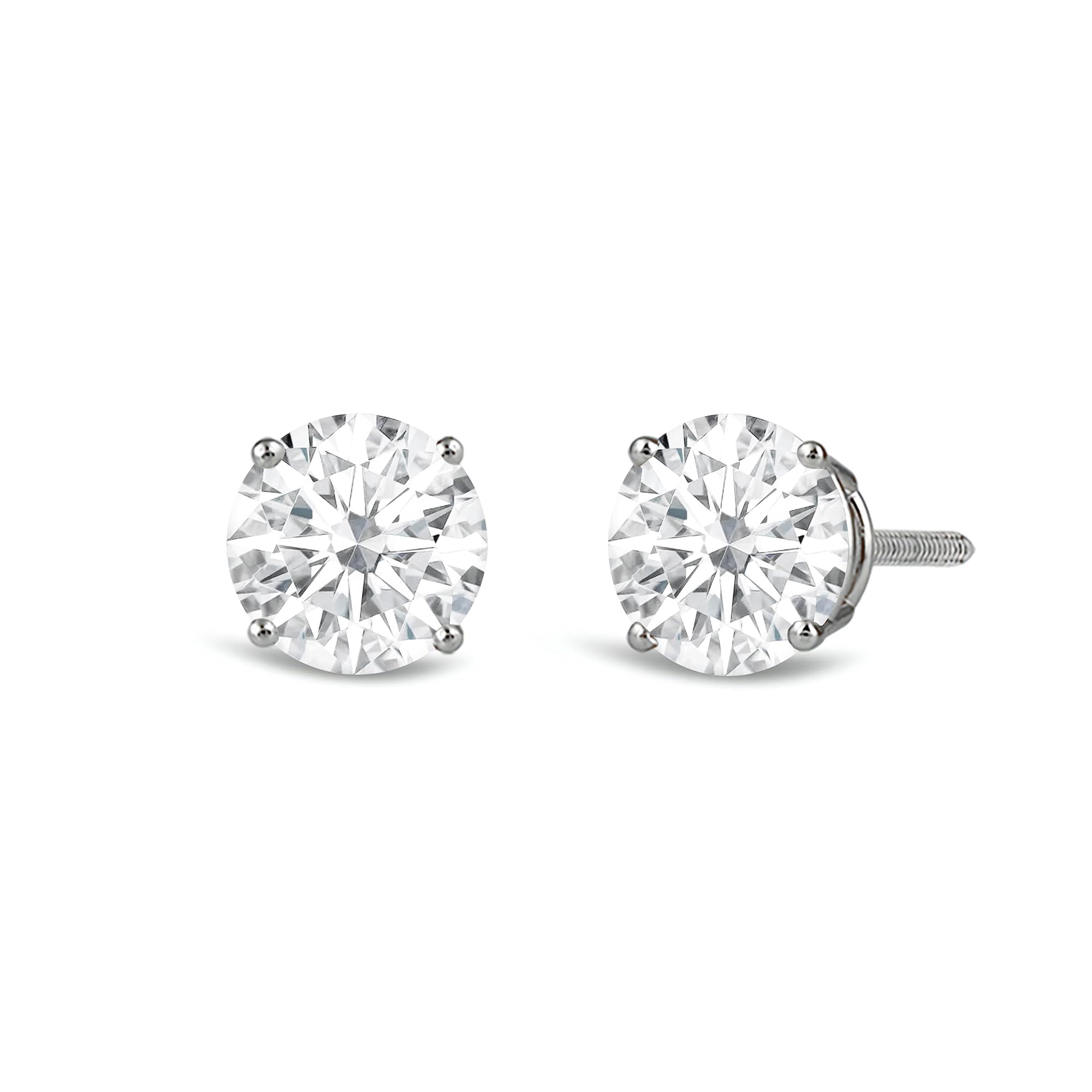 Jewelili 14K Solid White Gold Classic Four Prong Stud Earrings | IGI Certified Round Cut Lab Grown Diamond | Screw Back Posts | 1.0 CTW (F Color, SI2 Clarity) | With Gift Box