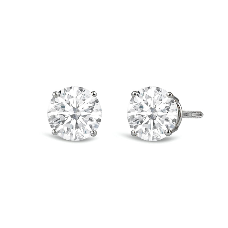 • Load image into Gallery viewer, Jewelili 14K Solid White Gold Classic Four Prong Stud Earrings | IGI Certified Round Cut Lab Grown Diamond | Screw Back Posts | 1.0 CTW (F Color, SI2 Clarity) | With Gift Box