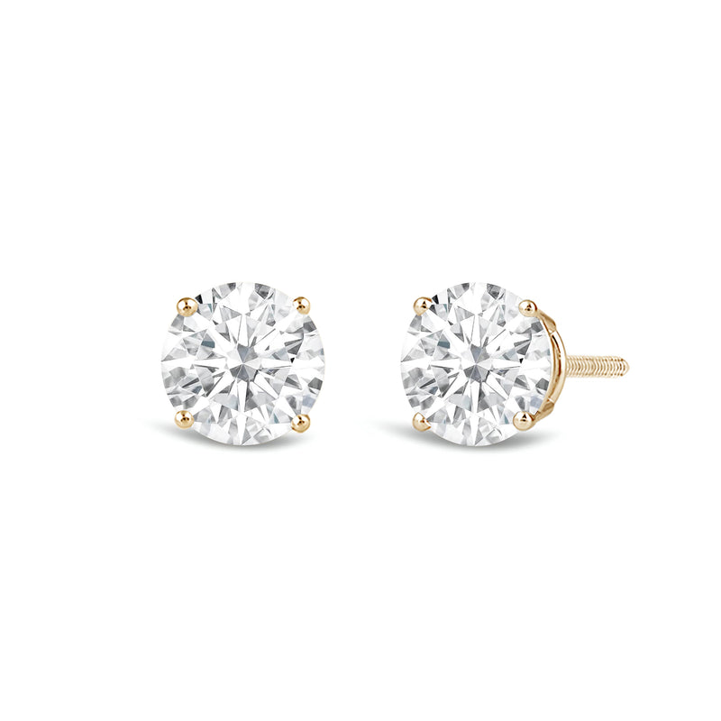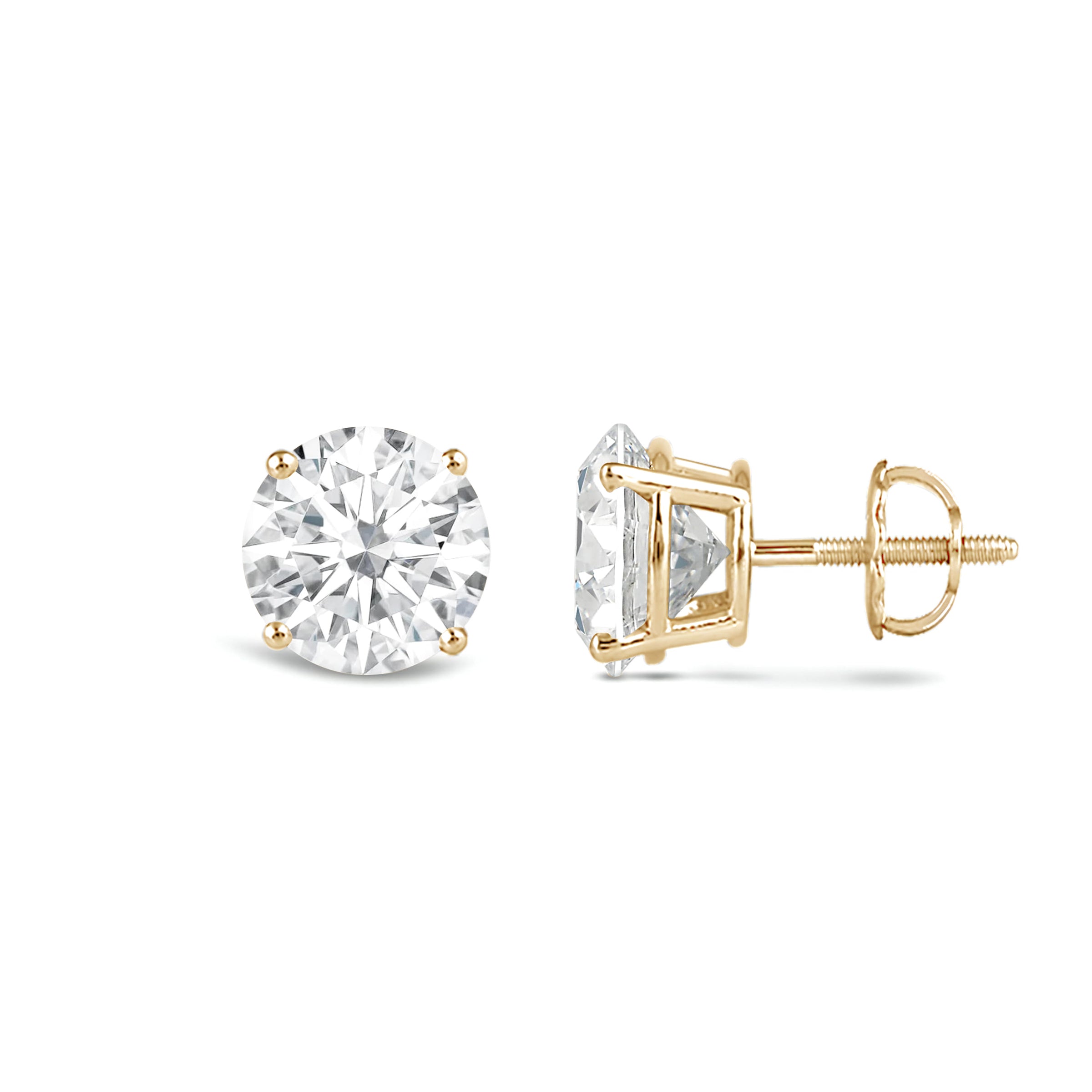 • Load image into Gallery viewer, Jewelili 14K Solid Yellow Gold Classic Four Prong Stud Earrings | IGI Certified Round Cut Lab Grown Diamond | Screw Back Posts | 0.50 CTW (F Color, SI2 Clarity) | With Gift Box