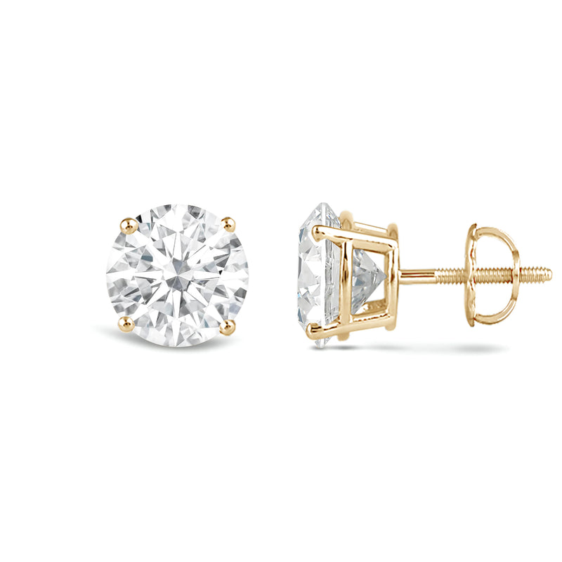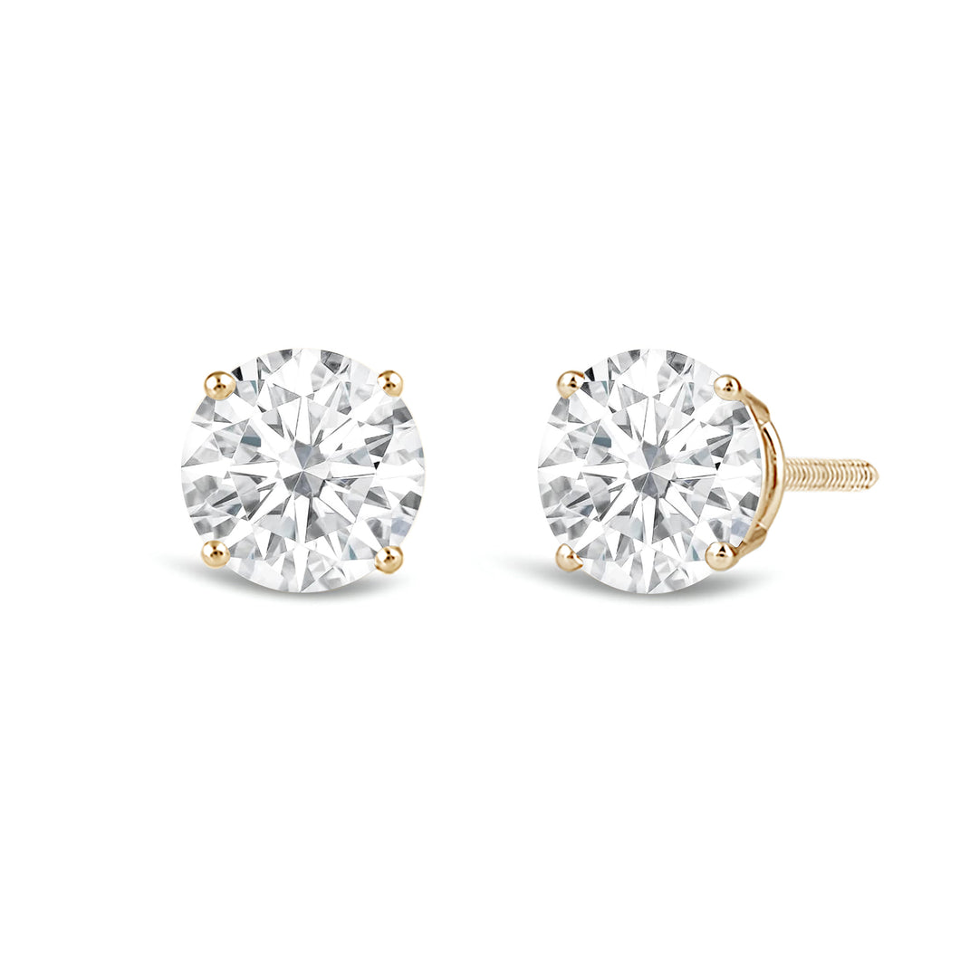 Jewelili 14K Solid Yellow Gold Classic Four Prong Stud Earrings | IGI Certified Round Cut Lab Grown Diamond | Screw Back Posts | 1.5 CTW (F Color, SI2 Clarity) | With Gift Box