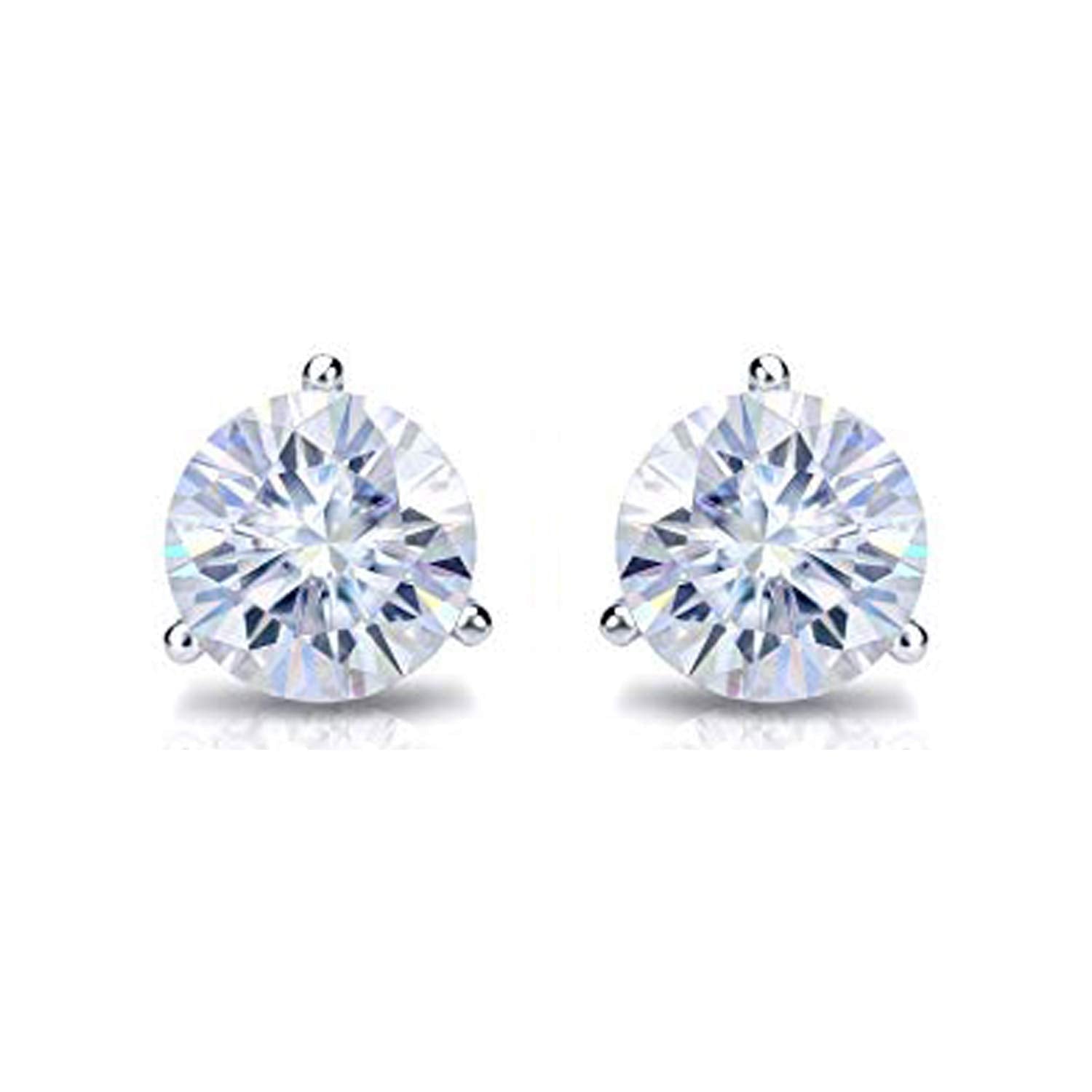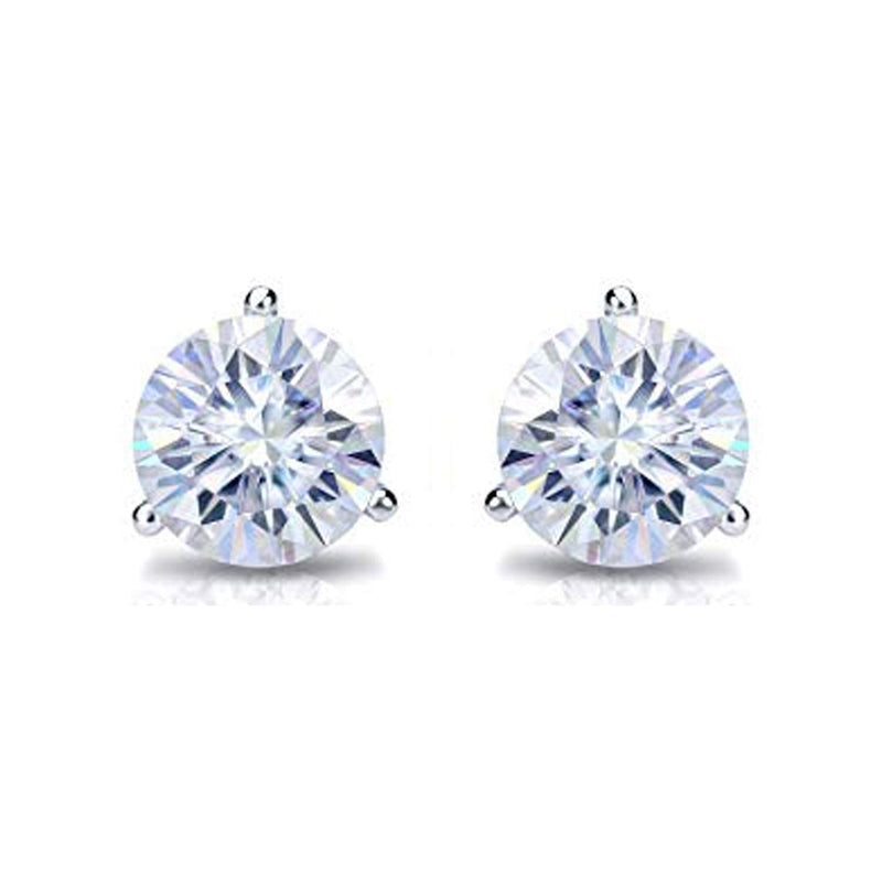 Jewelili 14K White Gold 1/2 CTTW Natural White Round Diamonds Stud Earrings