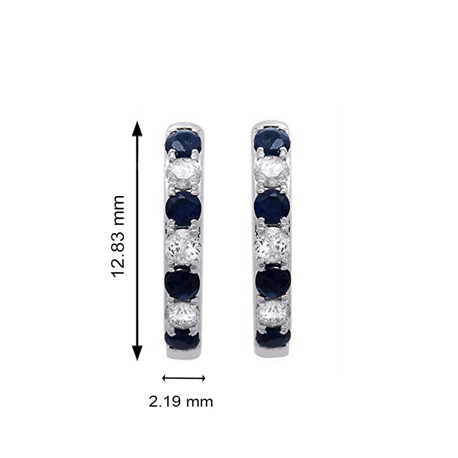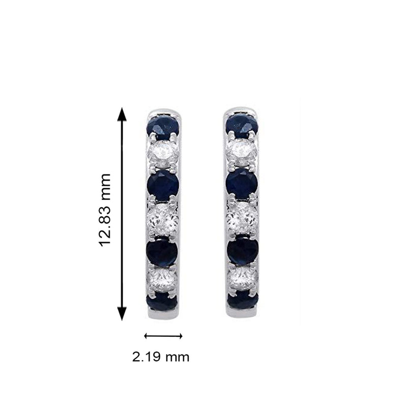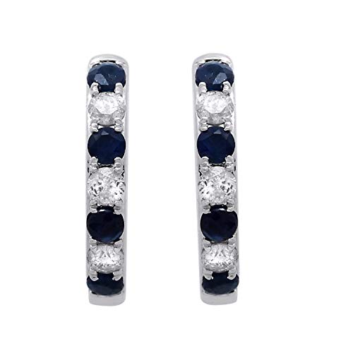 Jewelili 14K White Gold with Round Blue Sapphire and 1/5 CTTW Natural White Round Diamonds Hoop Earrings