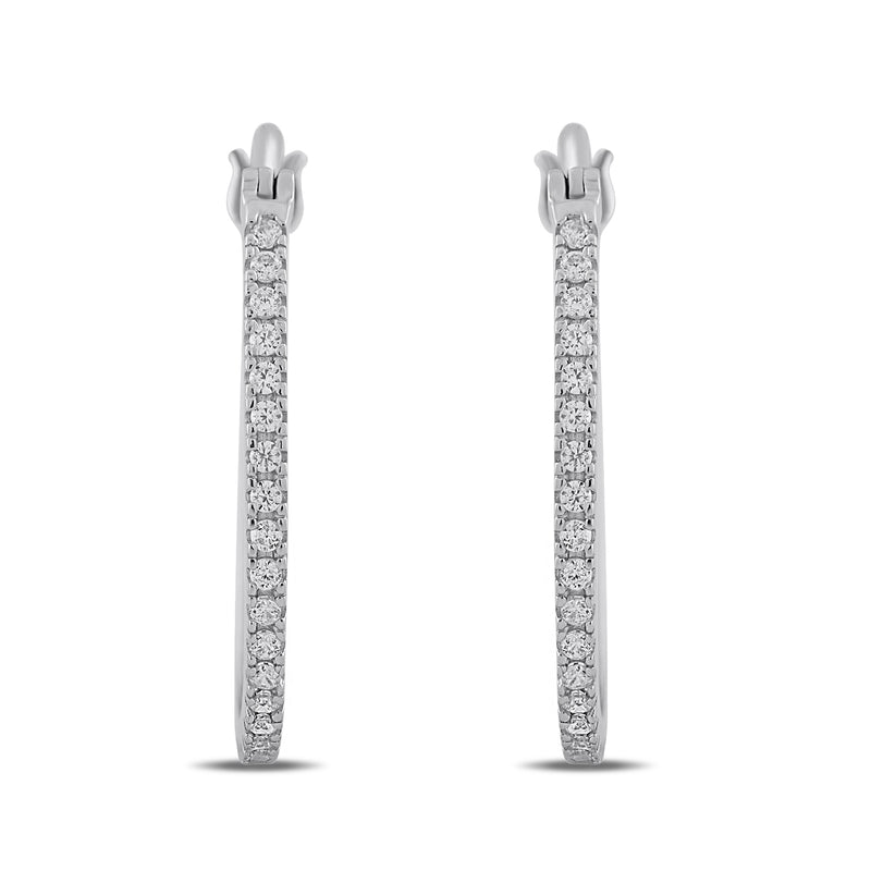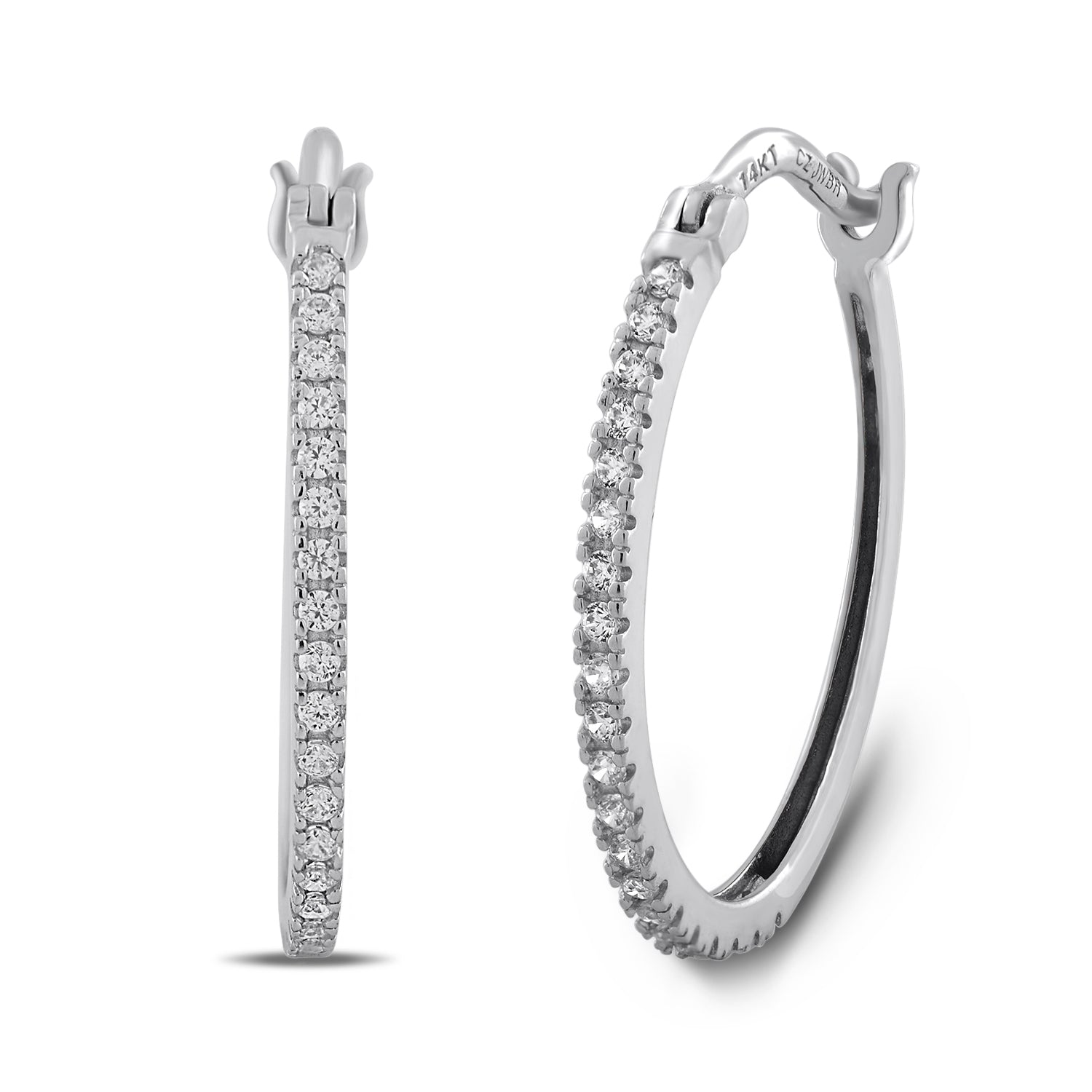 Jewelili 14K White Gold Round Cubic Zirconia Hoop Earrings