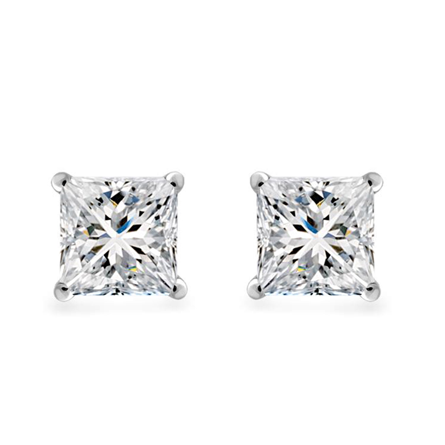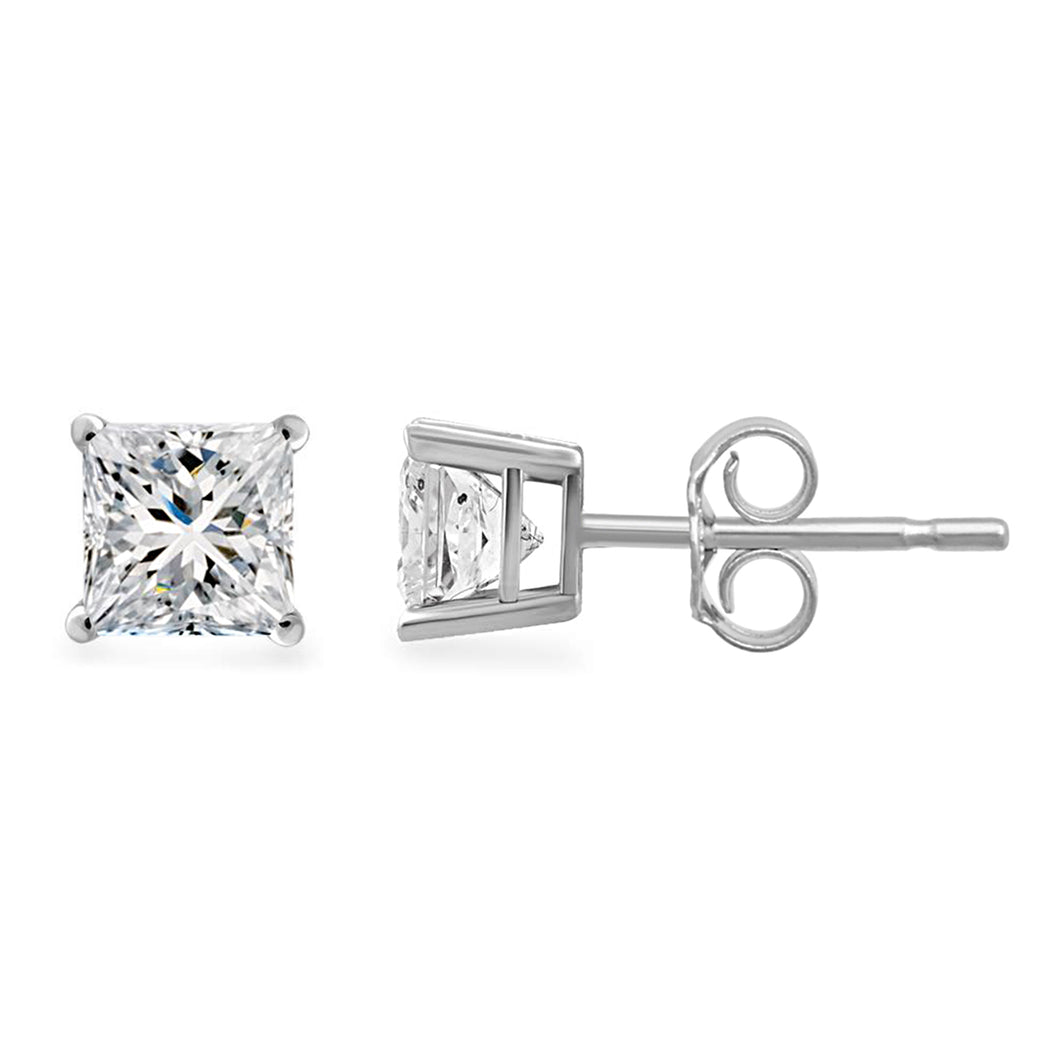 Jewelili 14K White Gold with 3/8 CTTW Princess Cut Diamonds Stud Earrings