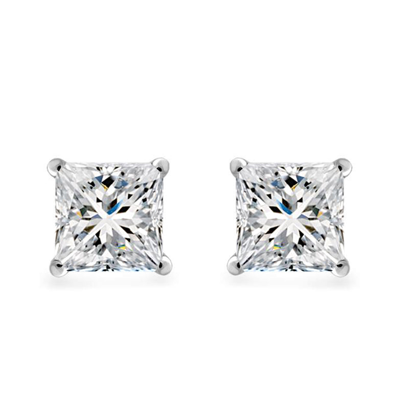 • Square shaped stud earrings in 14k white gold with 3/8 cttw natural white diamond.