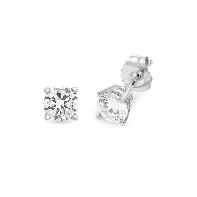 Jewelili 14K White Gold With 1/2 CTTW Round Diamonds Stud Earrings