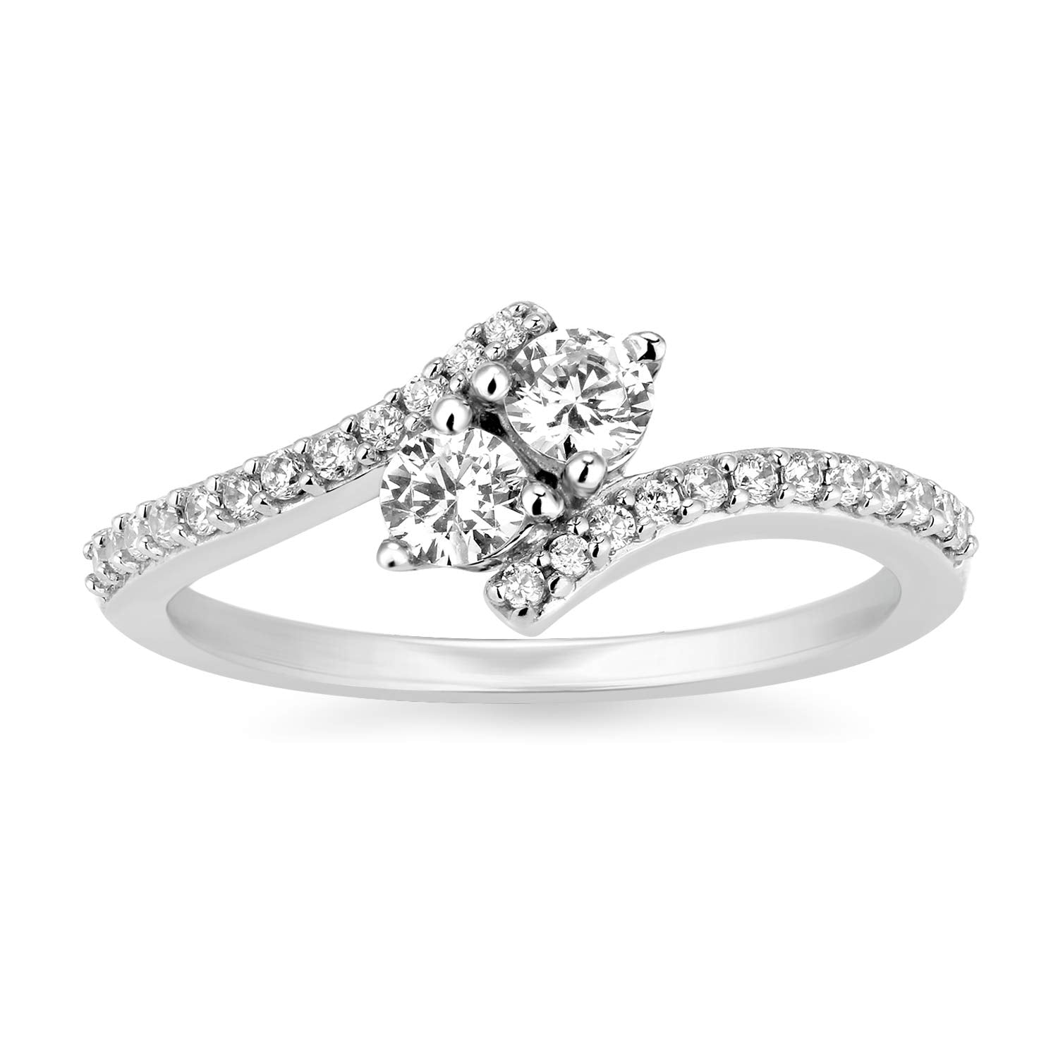 Jewelili 14K White Gold with 1/2 CTTW Diamond Ring