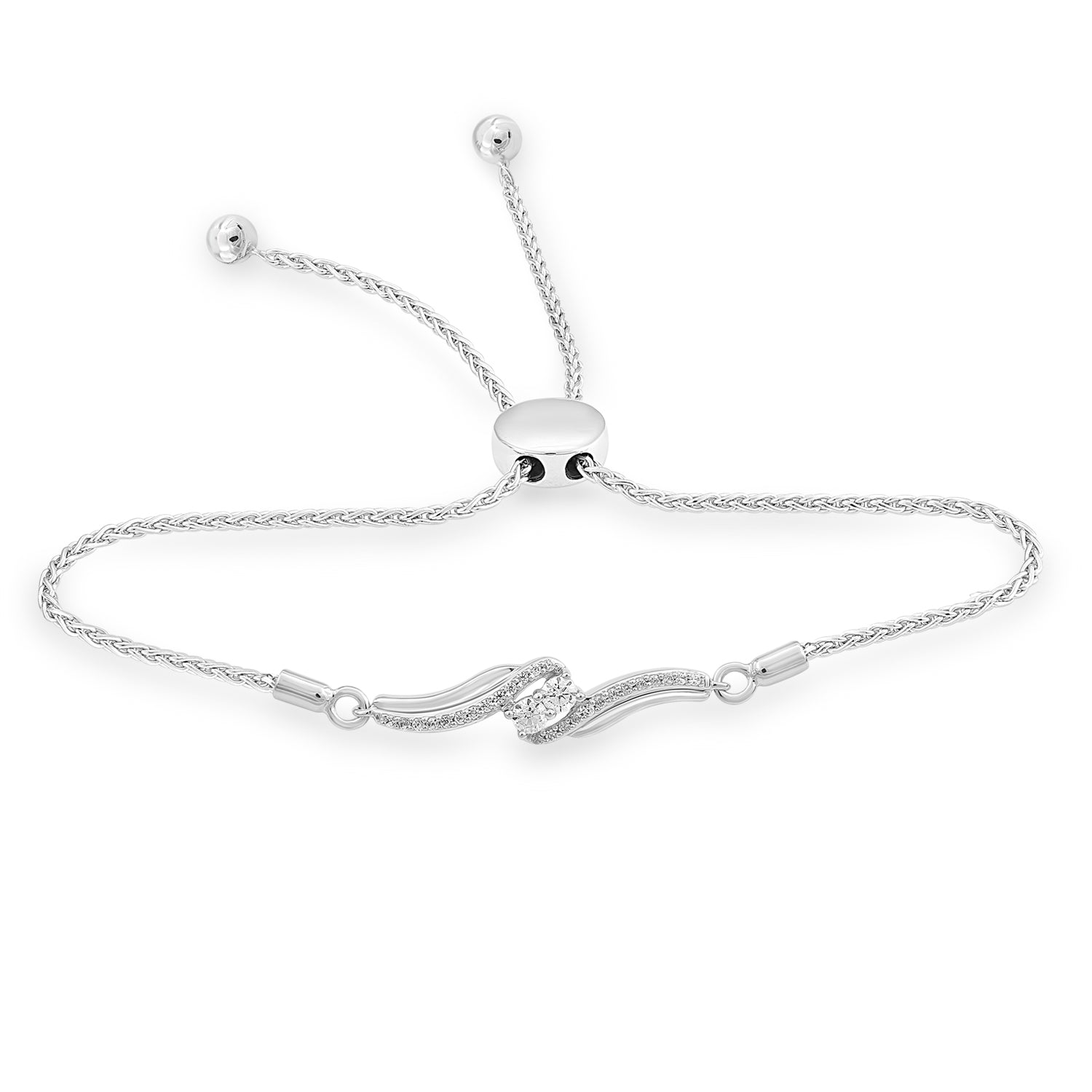 Jewelili 14K White Gold With 1/4 CTTW Natural White Round Diamonds Bolo Bracelet