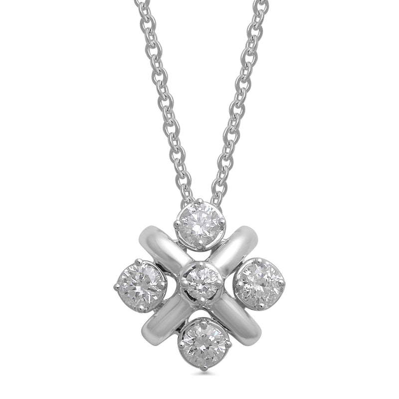 • 14K White Gold With 3/8 Cttw Natural White Round Diamonds Pendant Necklace