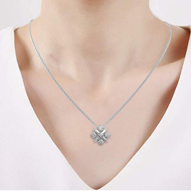 Jewelili 14K White Gold With 3/8 CTTW Natural White Round Diamonds Pendant Necklace