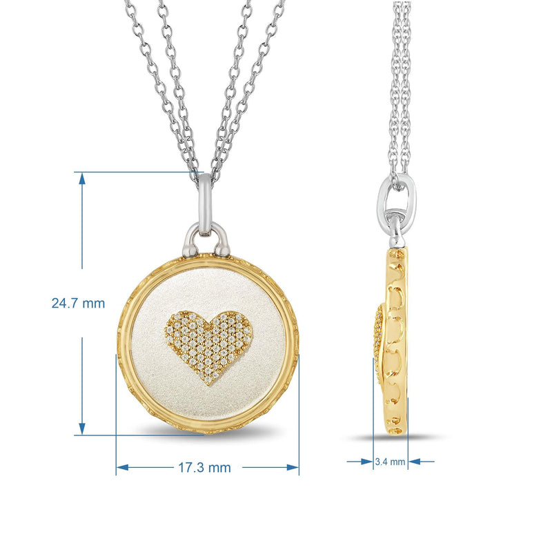 Jewelili 14K Yellow Gold and Sterling Silver 1/10 Cttw Natural White Round Diamond Pendant Necklace