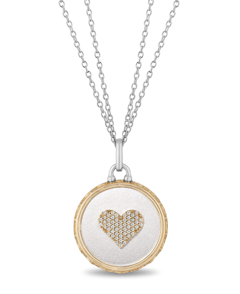 • Load image into Gallery viewer, Jewelili 14K Yellow Gold and Sterling Silver 1/10 Cttw Natural White Round Diamond Pendant Necklace