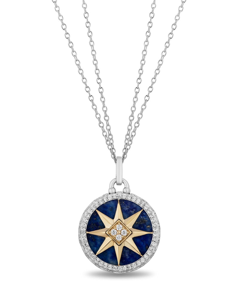• Load image into Gallery viewer, Jewelili 14K Yellow Gold and Sterling Silver 16 MM Lapis Lazuli with 1/4 Cttw Natural White Round Diamond Star Pendant Necklace