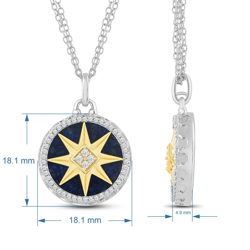 Jewelili 14K Yellow Gold and Sterling Silver 16 MM Lapis Lazuli with 1/4 Cttw Natural White Round Diamond Star Pendant Necklace